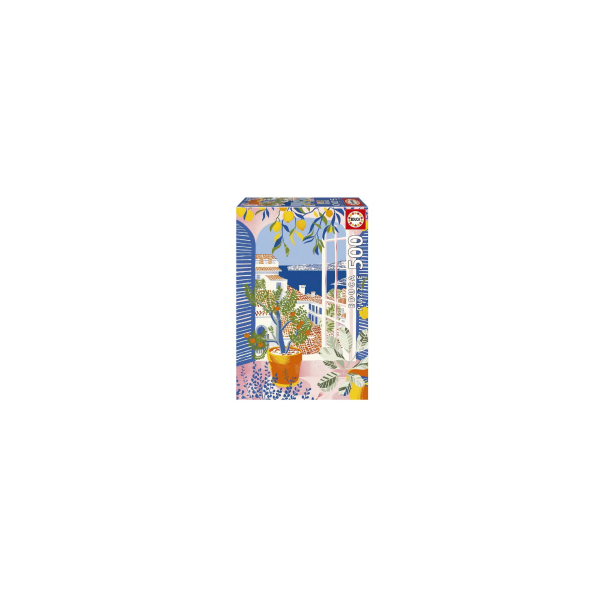 Disfruta de un momento de relax montando este precioso Puzzle Lemon Ciellopiezas de 500 piezas de Educa, con una ilustración llena de color y estilo mediterráneo. La escena muestra una ventana abierta con vistas al mar, rodeada de plantas, limones y arquitectura típica, creando una imagen cálida y decorativa que invita a desconectar.