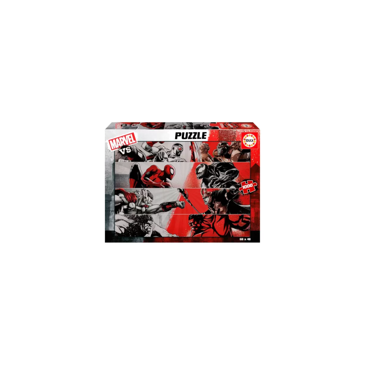¡La batalla definitiva entre héroes y villanos llega en forma de rompecabezas con el Puzzle Marvel Capitán América 1000 Pzs! Este espectacular rompecabezas de 1000 piezas reúne a los personajes más emblemáticos del universo Marvel enfrentados en una escena de acción épica. Spiderman, Iron Man, Thor, Capitán América, Hulk y muchos más luchan codo a codo contra sus archienemigos en una ilustración cargada de energía, color y dinamismo.