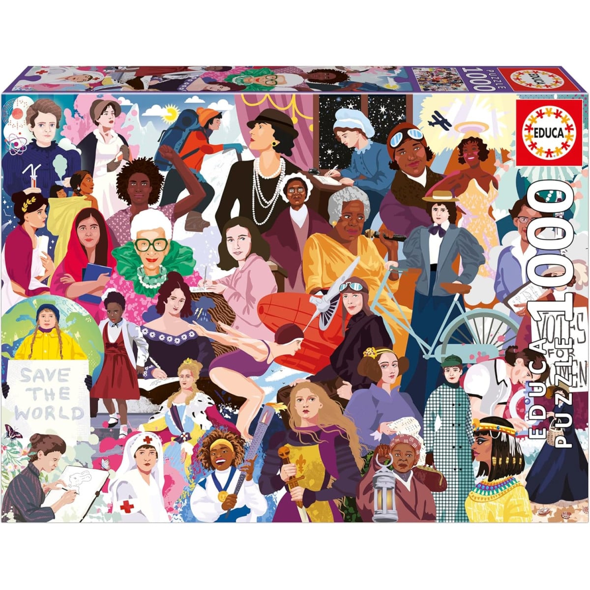 Descubre el Puzzle Mujeres Icónicas, con una ilustración inspiradora llena de personajes históricos, ideal para disfrutar de un montaje desafiante y con valor educativo.