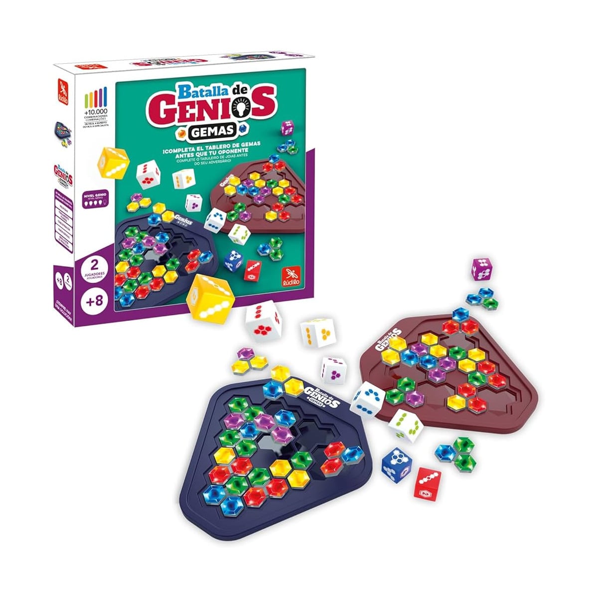 La Batalla de Genios Gemas de Lúdilo es un emocionante juego de mesa que combina lógica, planificación y velocidad. Apto para jugadores a partir de 8 años, este desafío te sumerge en un mundo de gemas preciosas y patrones intrigantes. Aquí tienes todo lo que necesitas saber: