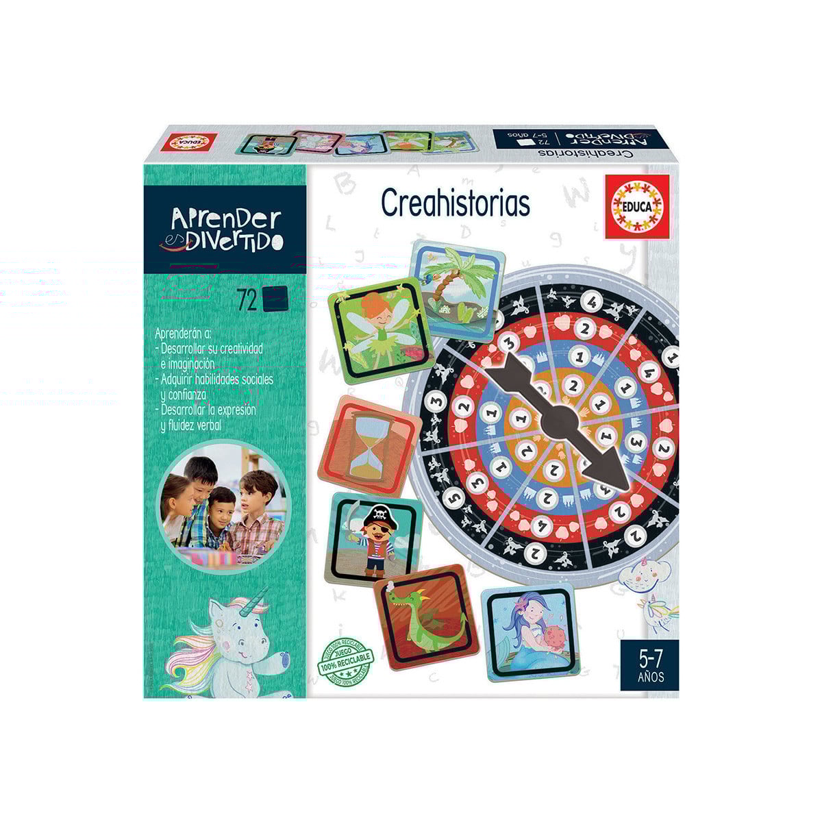 Con el juego educativo Crear Historias de la Colección Aprender es Divertido tu peque trabajará su imaginación, su fluidez verbal y desarrollo de la expresión.