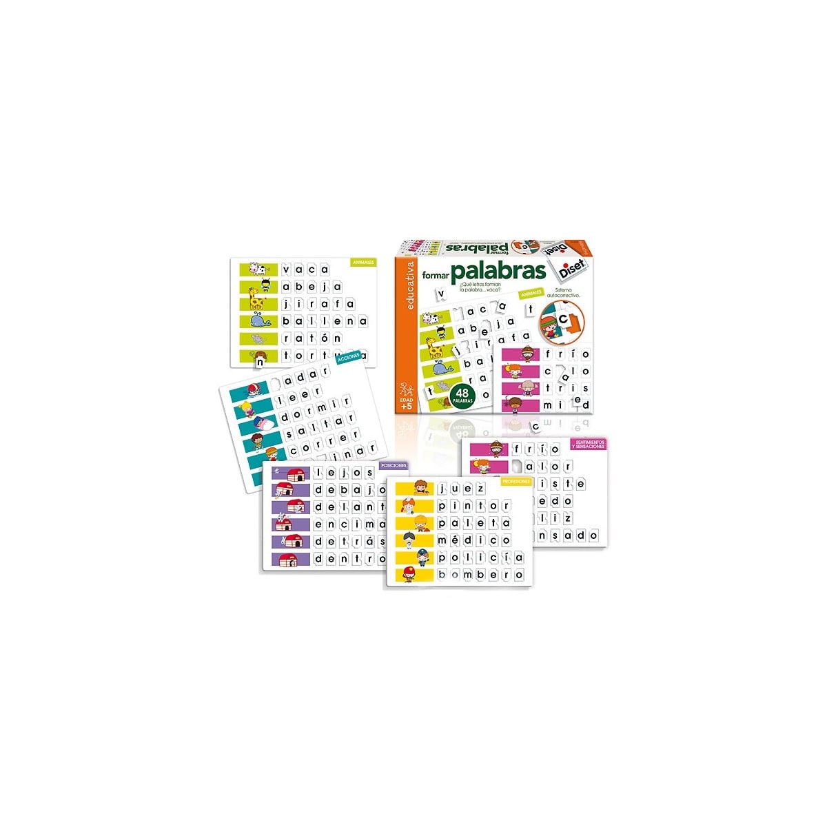 Con el juego formar palabras de Diset los niños y niñas a partir de los 5 años aprenderán a formar hasta 48 palabras de diferentes temáticas.