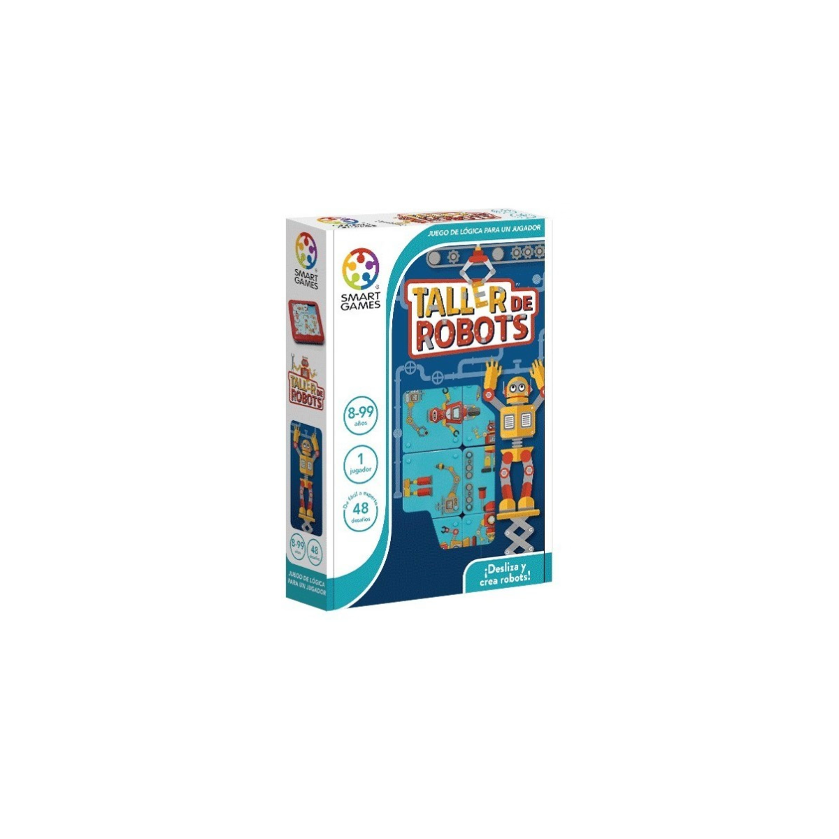 Juego de lógica Taller de Robots de Smart Games con 48 desafíos progresivos. Desliza las piezas y construye robots completos. Ideal desde 8 años para entrenar mente y concentración.