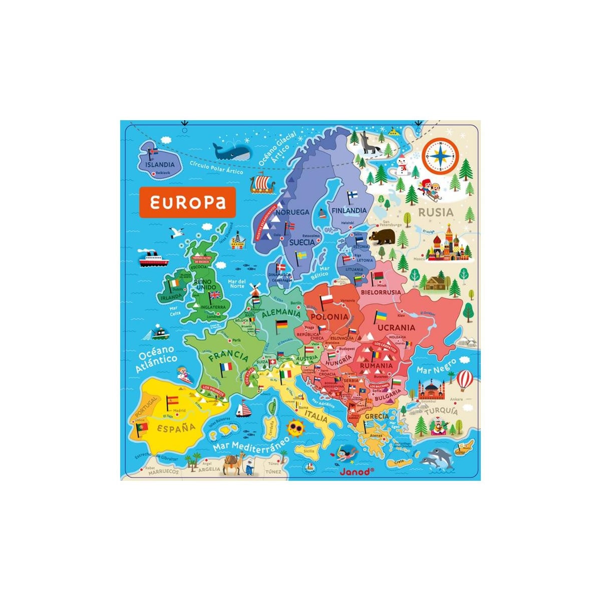 Un mapa magnético de Europa. Es ideal para aprender geografía y curiosidades.