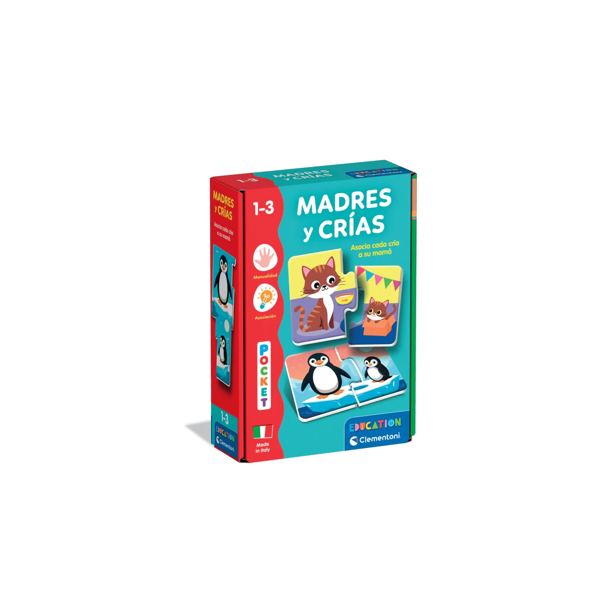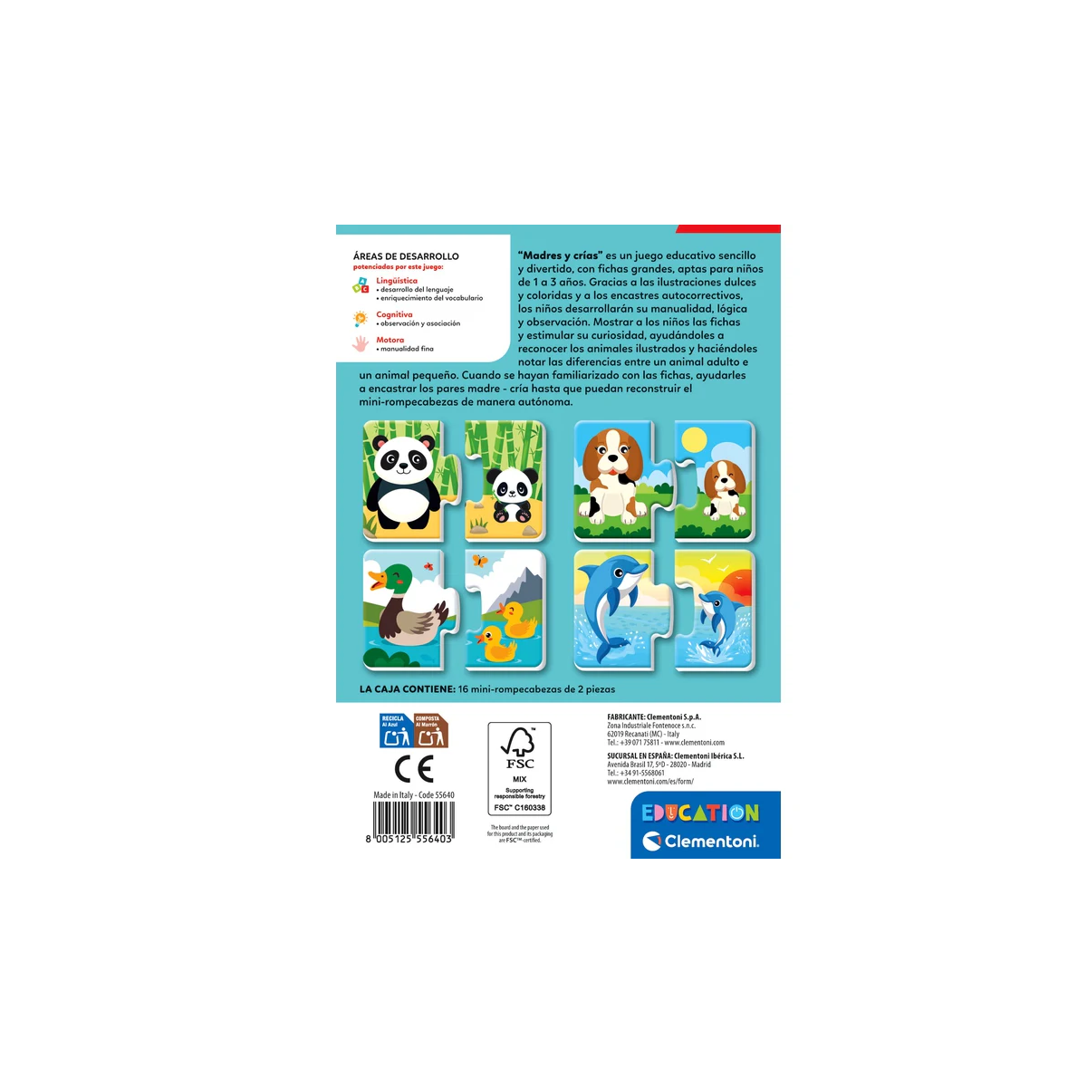 Juego Madres y Crías Clementoni con puzzles para asociar animales. Ideal para desarrollar lógica y observación en puzzle educativo.