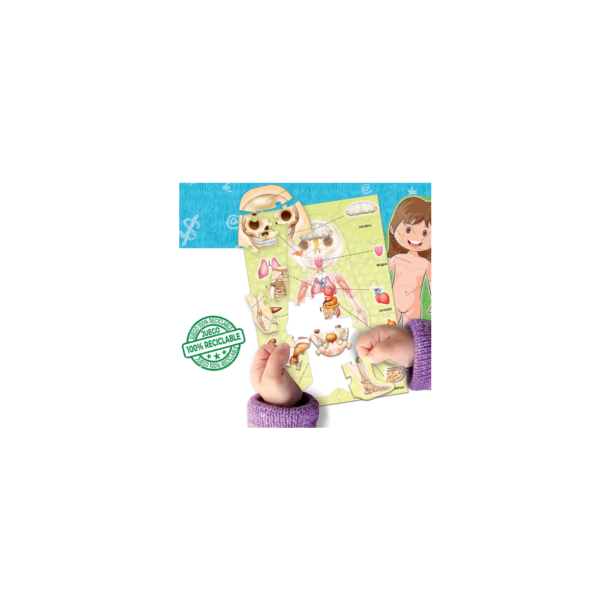 - Incluye: 4 puzzle (niño, niña, esqueleto y órganos) para aprender sobre el cuerpo humano de manera encajable con 99 piezas e instrucciones de uso