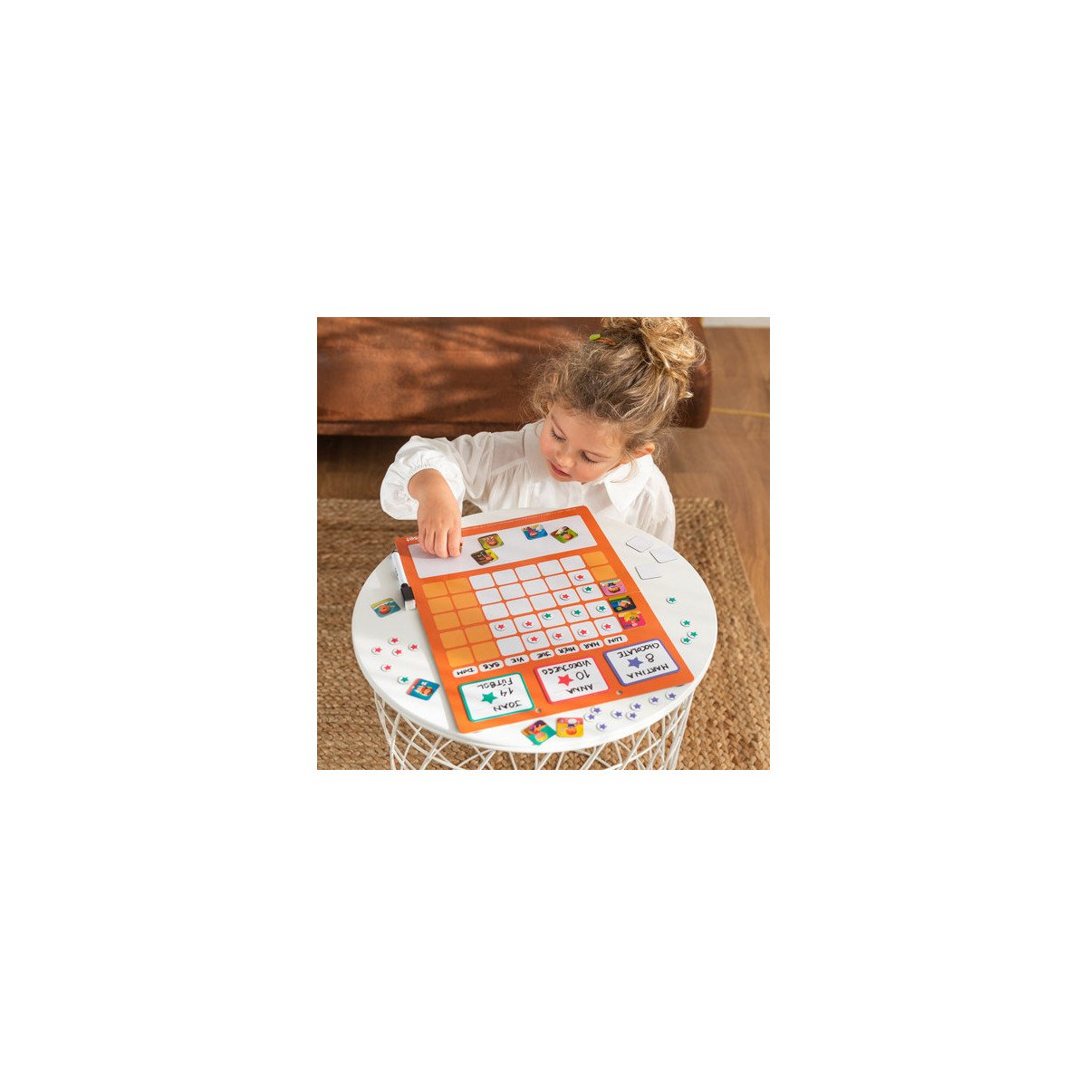 - Incluye: 1 tabla magnética, 123 imanes, 3 identificadores, 12 tareas , 3 tareas personalizables, 105 piezas y 1 rotulador borrable