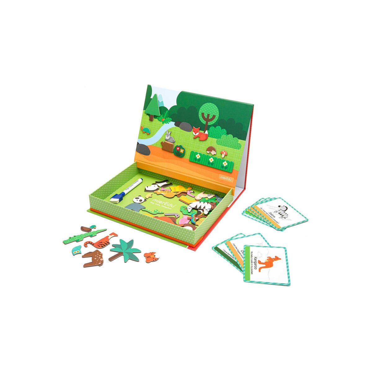 Con este maletín magnético l@s niñ@s pueden imaginar todas las historias que quieran y crear imágenes con los animales, además de poder llevarlo a cualquier parte con vosotr@s.