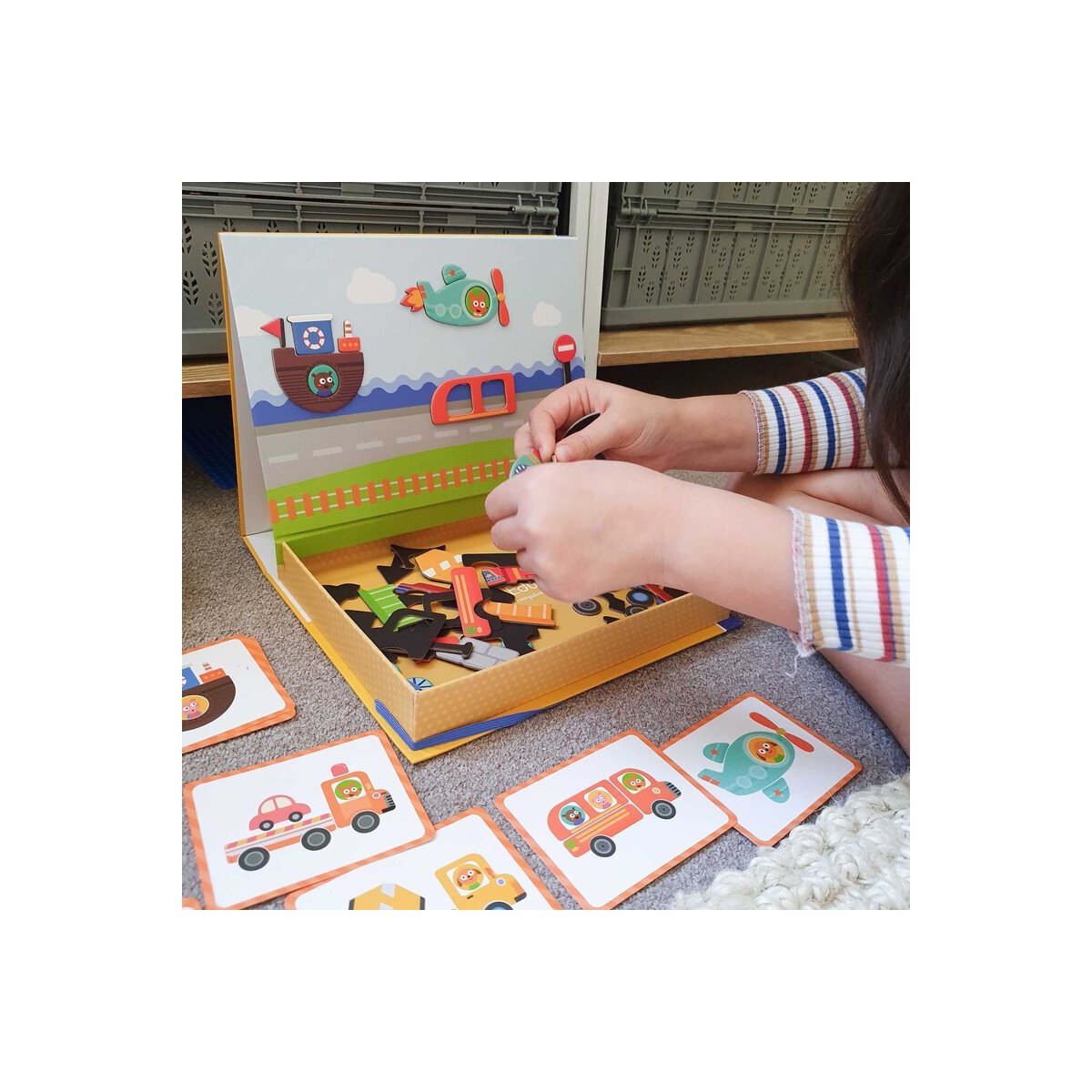 Crea tus propias historia donde quieras, porque este maletín es muy fácil de transportar. Además se convierte en un tablero de dibujo.
