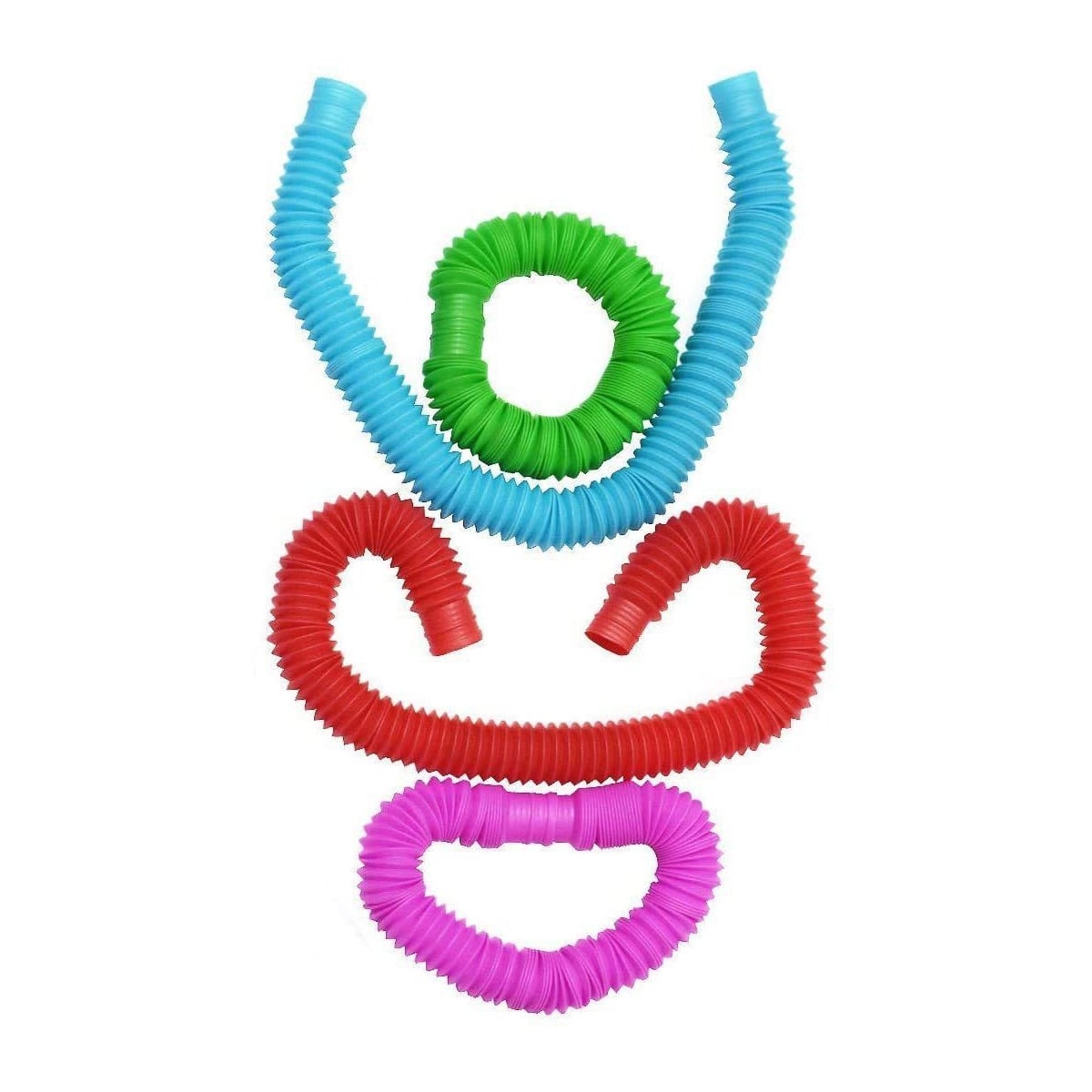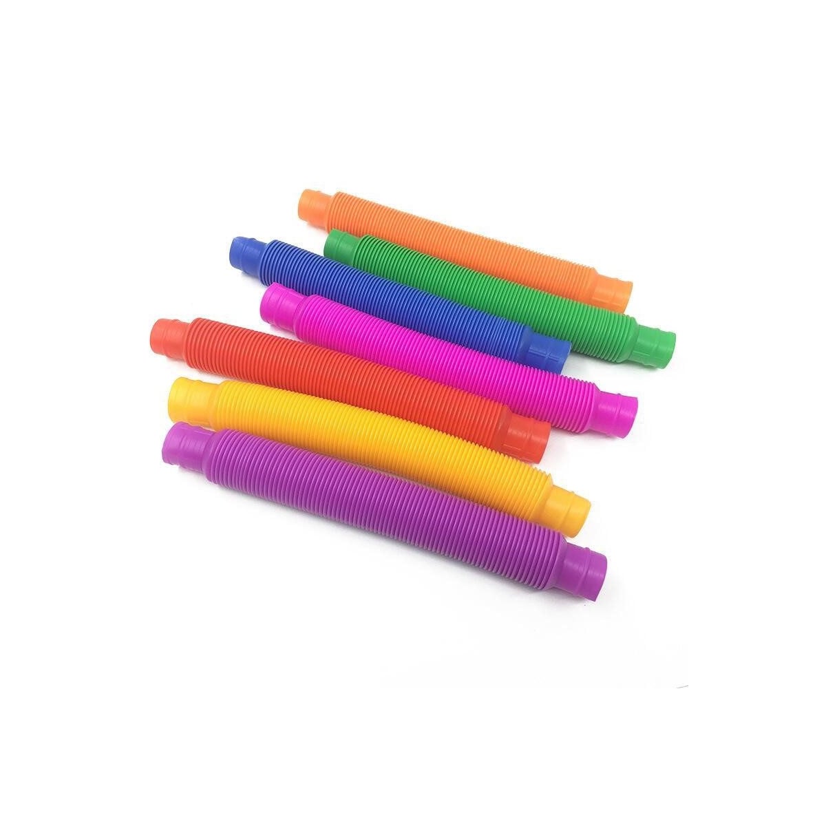 - Set de 8 tubos extensibles: Incluye 8 tubos de colores brillantes y llamativos que se pueden estirar y conectar entre sí.