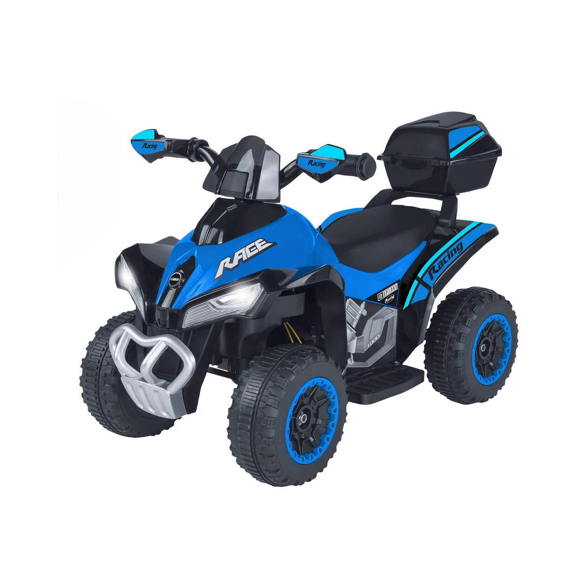 Este Quad Motor Azul BT Li-Ion 8.4V es una opción divertida y segura para empezar a conducir de forma eléctrica. Incorpora un motor de 15W, batería recargable de litio de 8,4 V y 4,5 Ah, con una autonomía estimada de 1-2 horas según intensidad de uso y terreno. Su velocidad máxima alcanza los ≈ 3 km/h, ideal para que los más pequeños lo manejen con calma. Las dimensiones son compactas, de 64,5 × 29,5 × 34 cm, lo que lo hace manejable incluso en espacios reducidos, y su peso es de 5,7 kg, combinado plástico y partes metálicas para mayor resistencia.