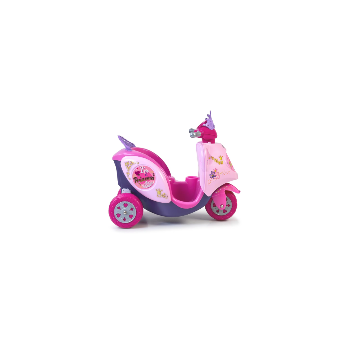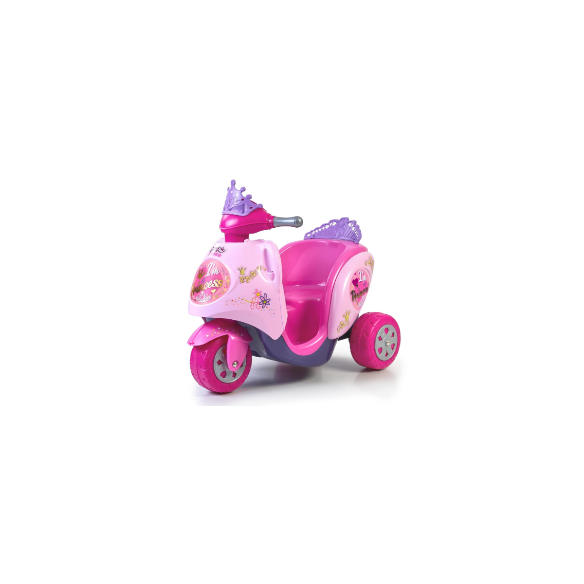 - Incluye: 1 scooty feber correpasillos eléctrica color rosa con 3 ruedas, asiento, manillar y decoraciones de princesa