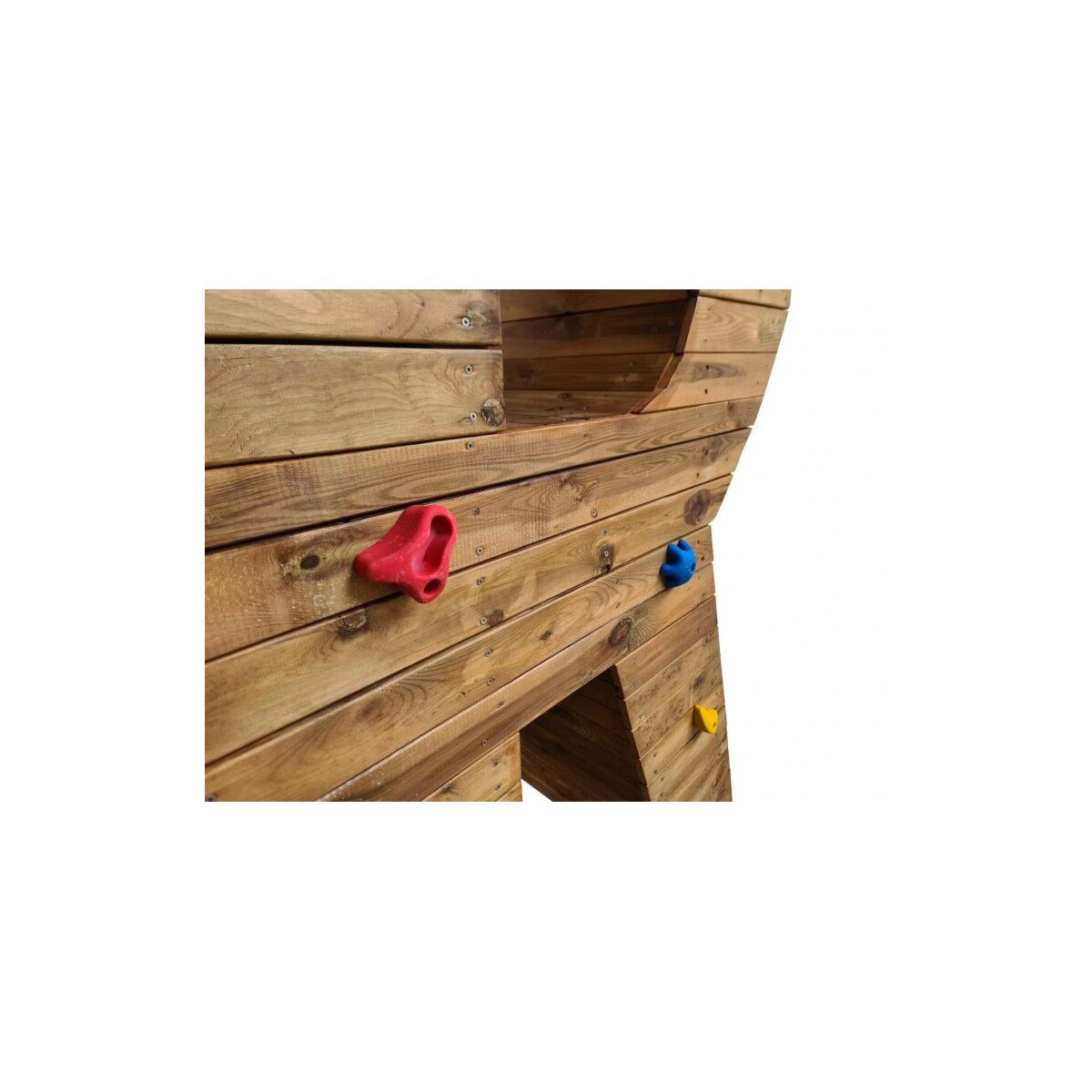 Con piedras de escalada integradas, este parque se convierte en un emocionante rocódromo infantil. La letra gigante MASGAMES ALPHAPLAY, en su estado natural sin pintar, resalta la belleza de la madera, ofreciendo una estética única y auténtica.