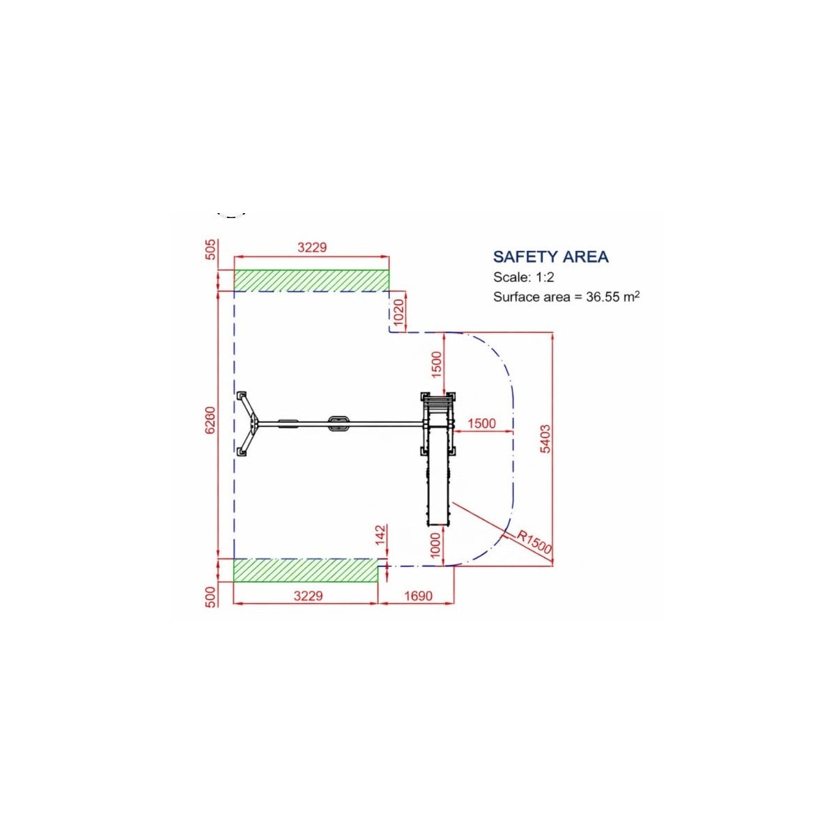 - Superficie del área de seguridad: 39,54 m2