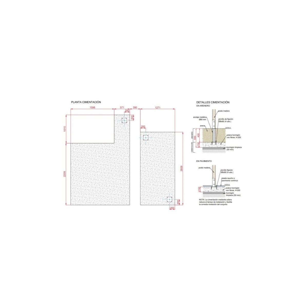 - Instalación sobre solera de hormigón con pavimento de seguridad.