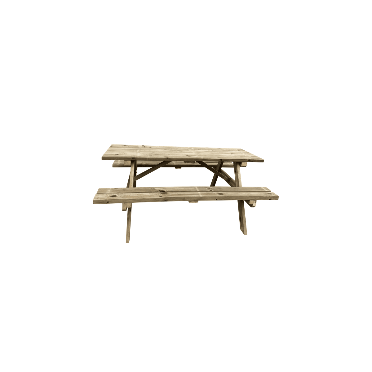 Gracias a su madera tratada en autoclave nivel IV, la mesa soporta perfectamente la lluvia, el riego, la exposición directa al sol e incluso puede permanecer en invierno al aire libre sin que se vea afectada.