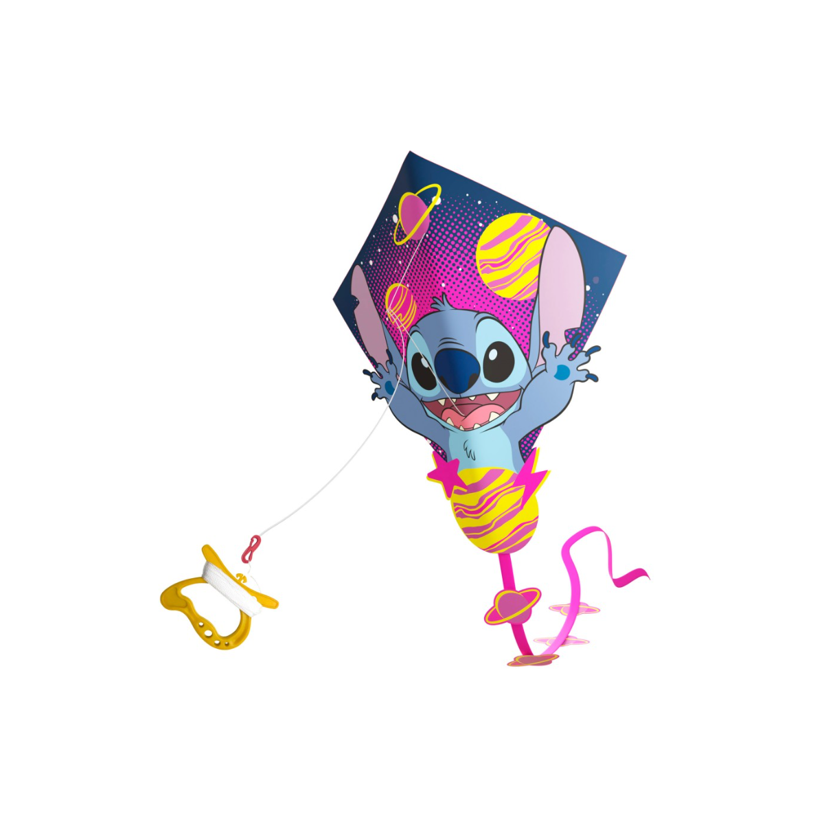 Ideal para parques, playas o zonas abiertas, esta Cometa Stitch Diamante Pop Up Nylon estimula el juego activo, la coordinación y la conexión con la naturaleza. ¡Una forma fantástica de alejarse de las pantallas y pasar tiempo al aire libre en familia!