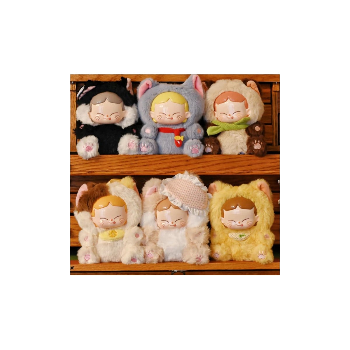 Estas figuras transmiten serenidad y alegría con su expresión sonriente y sus detalles cuidadosamente trabajados. Los trajes suaves al tacto, las orejitas acolchadas y los accesorios como bufandas o lacitos hacen que cada modelo sea especial. Ideal para quienes disfrutan de los juguetes sorpresa, estas pequeñas figuras invitan a coleccionar y crear tu propio rincón del “Cat Café” más adorable.