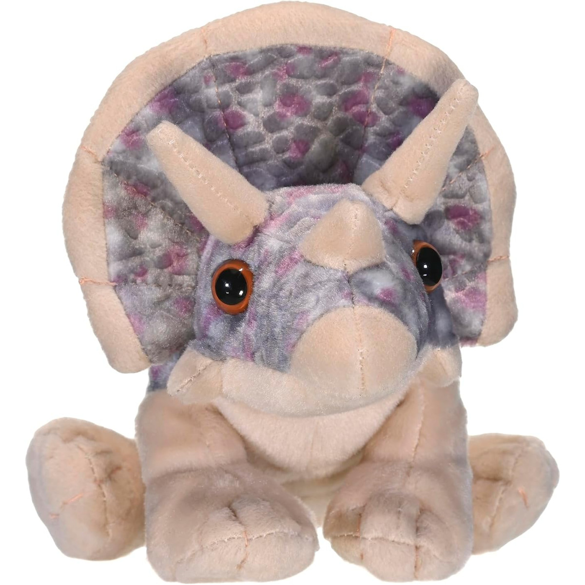 Este simpático peluche de triceratops de 20 cm es el regalo perfecto para niñas y niños que adoran a los dinosaurios. Con su aspecto encantador, sus tres cuernos característicos y el detalle del volante que rodea su cabeza, combina realismo con un aire adorable que invita al juego y a la imaginación.