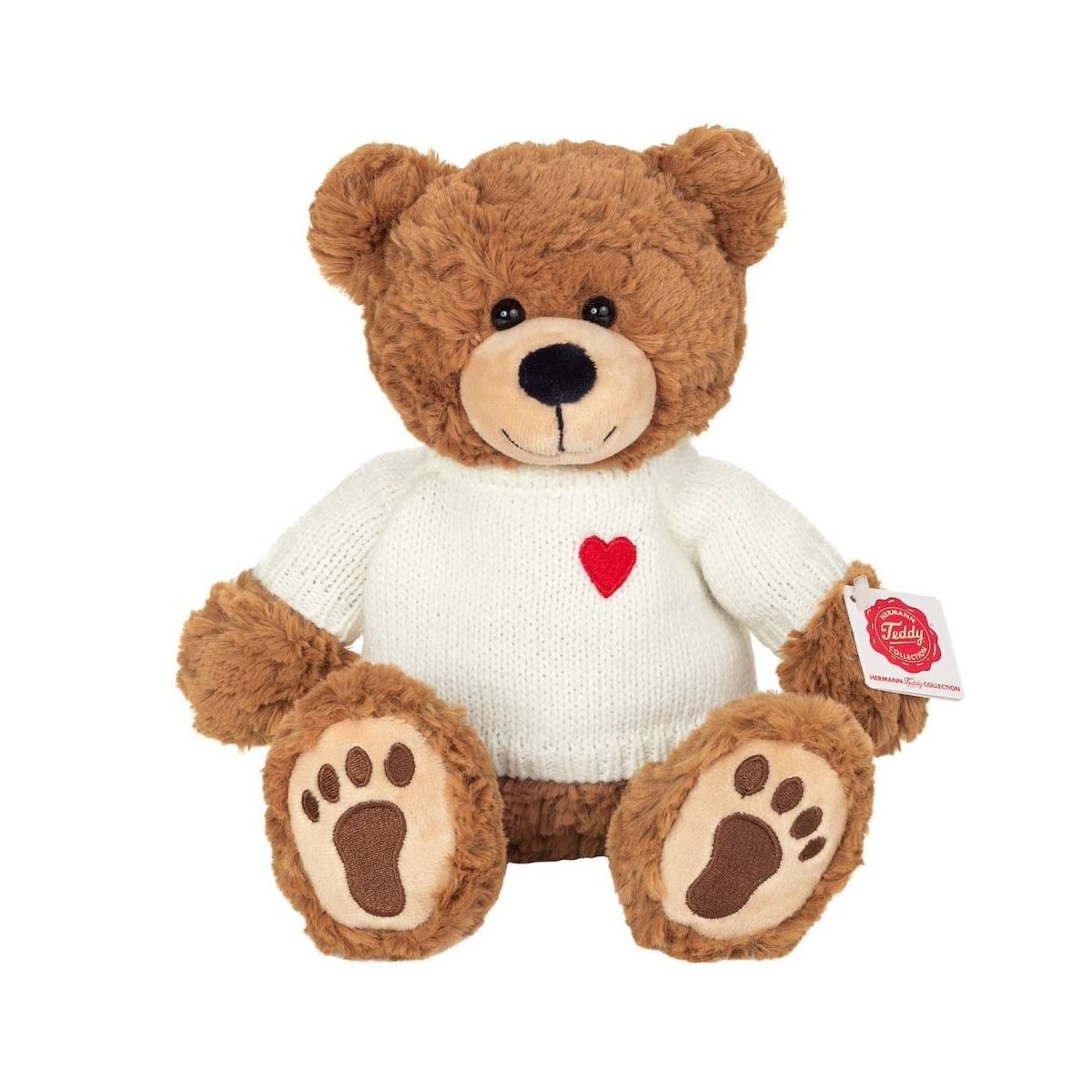 Teddy Hermann destaca por la calidad de sus peluches, y en este modelo se aprecia en la suavidad del tejido, en la confección del pullover y en la armonía general del conjunto. Es un osito perfecto tanto para juego tranquilo como para convertirse en pieza decorativa en una habitación infantil con estilo clásico. Su tamaño de 30 cm le da presencia sin resultar excesivo, lo que lo hace ideal como regalo especial.