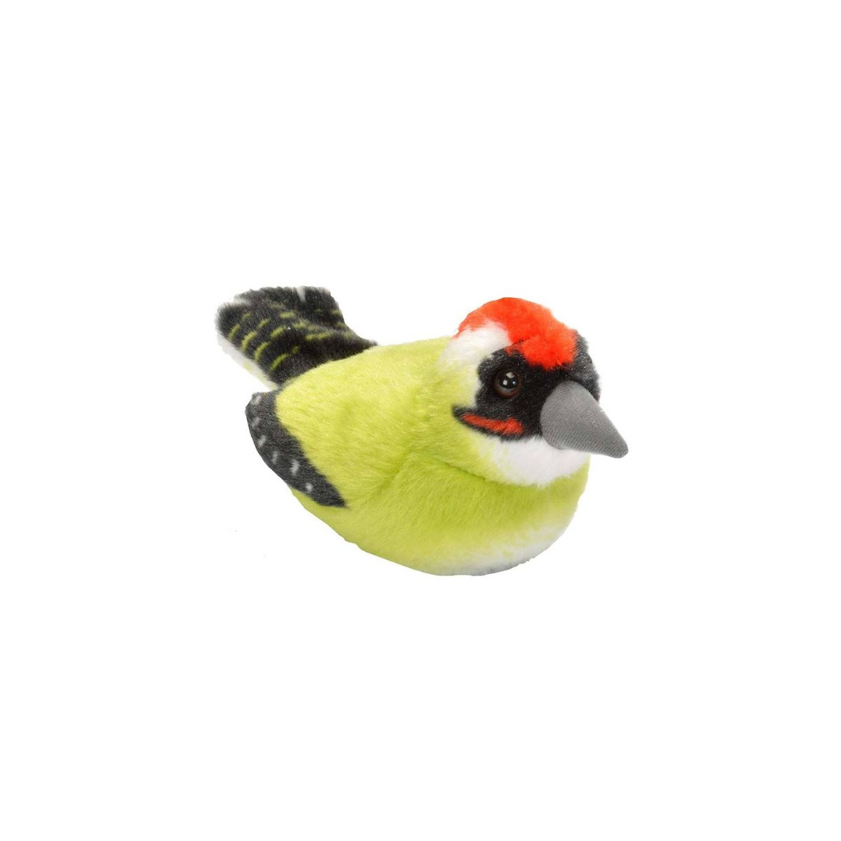 Peluche carpintero verde con función sonora: emite cantos reales al apretar. Diseño suave y detalles realistas, perfecto para niños curiosos y amantes de la naturaleza.