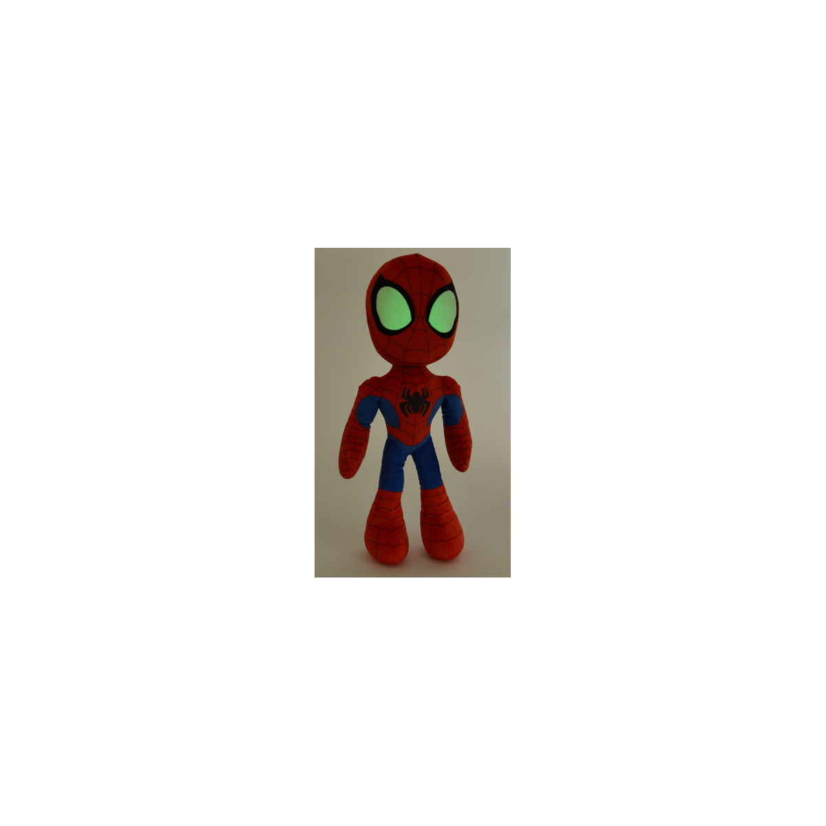 - Incluye: 1 peluche de Spiderman de Marvel con ojos que brillan en la oscuridad