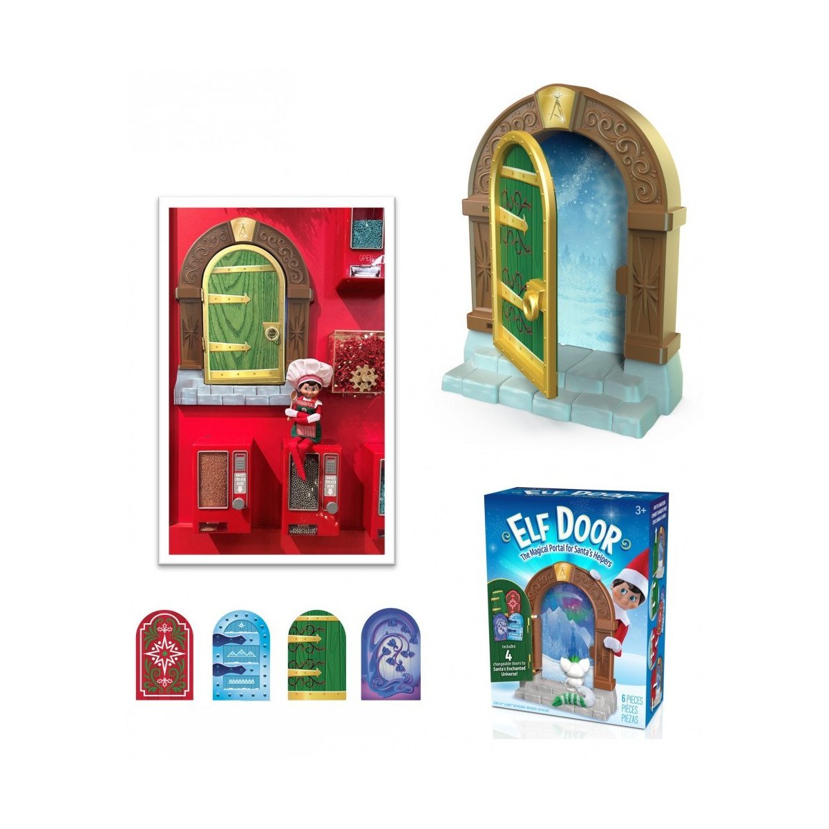 Ideal para familias que aman la tradición del Elf On The Shelf, este Portal Mágico se coloca contra la pared o sobre una superficie plana y se convierte en el punto de llegada mágico de los elfos. Las cuatro puertas intercambiables permiten adaptar la escena según la historia o el lugar al que quieran “viajar” cada noche. El set incluye la puerta principal de plástico, cuatro inserciones de cartón y una inserción de fondo para ambientar.