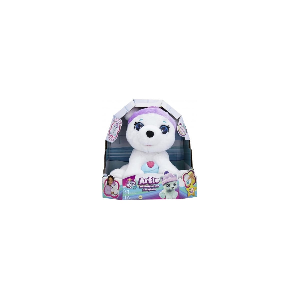 Artie el Oso Polar, de la colección Club Petz, es un peluche interactivo perfecto para niños y niñas desde los 12 meses. Este adorable oso polar necesita que lo cuiden, ya que cada vez que come su helado favorito, ¡se resfría y comienza a temblar! Los pequeños deben abrazarlo y acariciarlo para que vuelva a sentirse mejor, promoviendo el juego de roles y el desarrollo emocional. Artie el oso polar emite más de 10 sonidos diferentes, lo que hace que el juego sea aún más inmersivo y divertido. Además, su suave textura lo convierte en el compañero perfecto para abrazar y jugar.