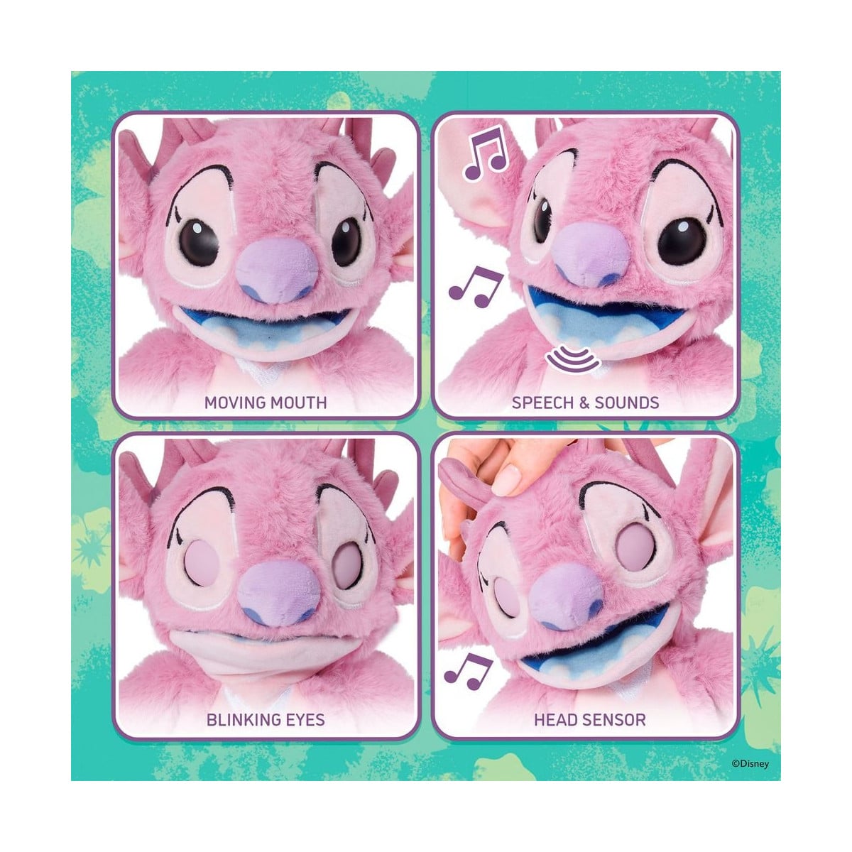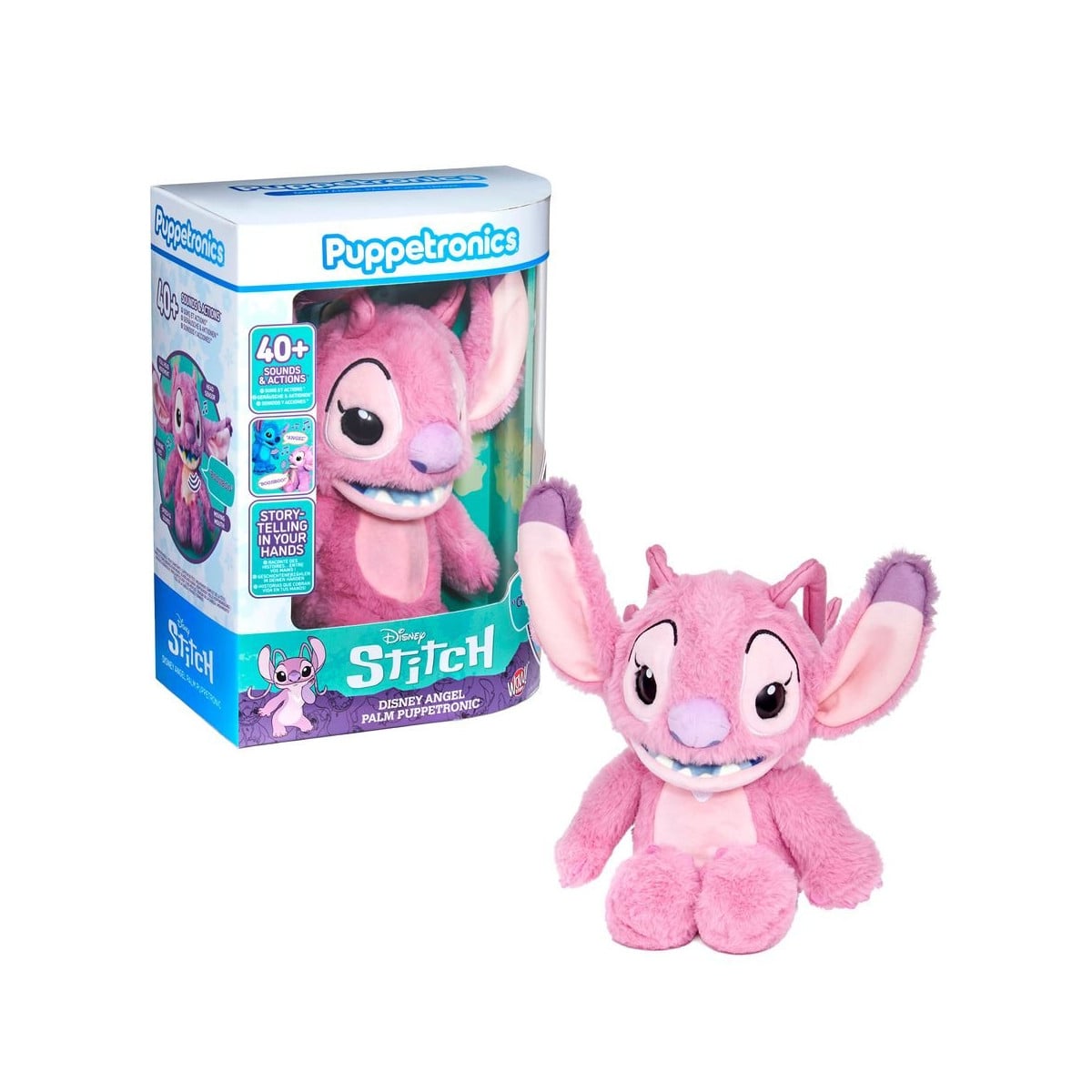Haz que Angel cobre vida en tus manos con el Disney Angel Palm Puppetronic, un muñeco interactivo lleno de encanto que convierte cada momento de juego en una experiencia única. Gracias a su sistema Puppetronic, podrás controlar sus movimientos mientras responde con sonidos, luces y expresiones adorables.