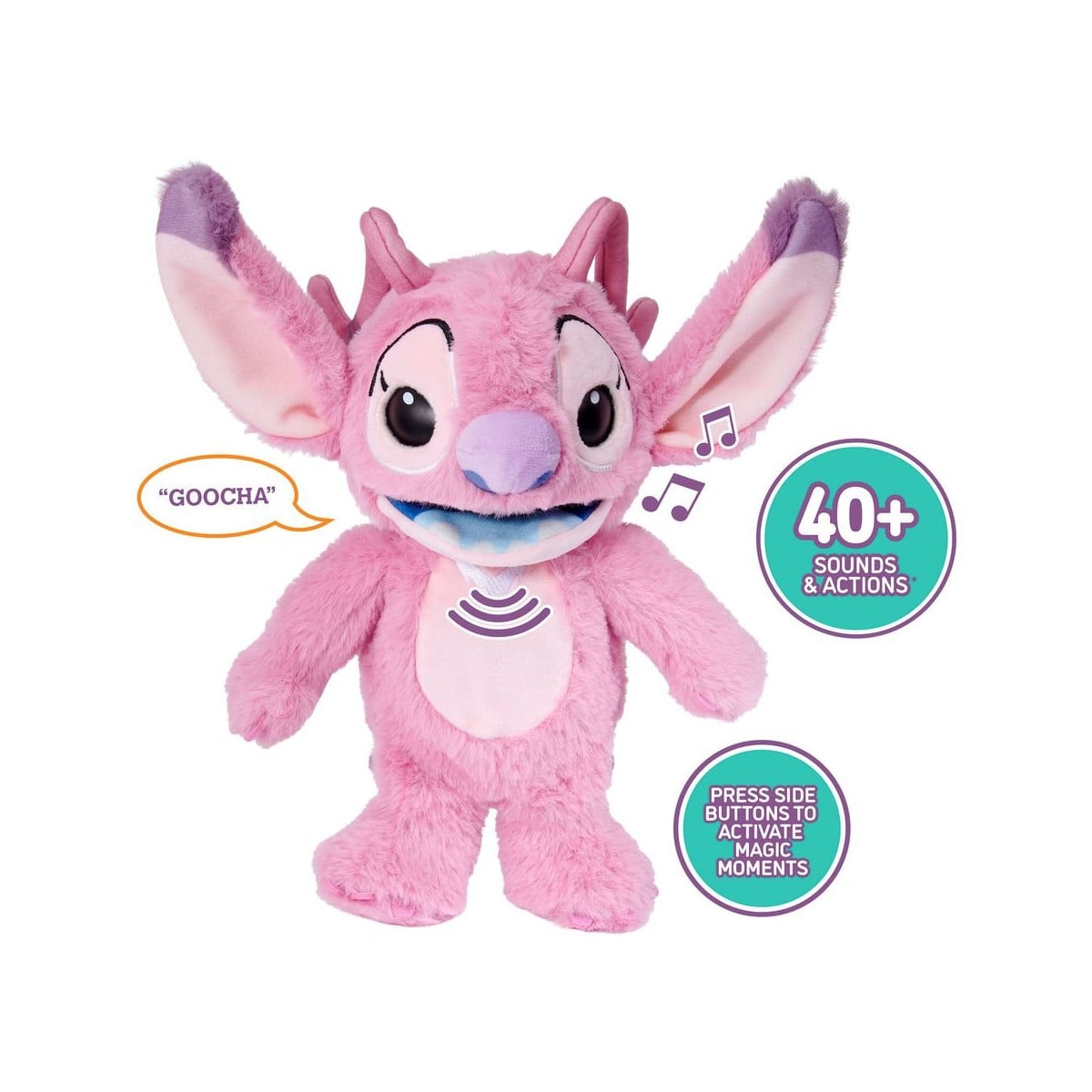 Además, gracias a la tecnología Chatty Tech, puede interactuar con Stitch, generando respuestas únicas que hacen el juego aún más dinámico y divertido.