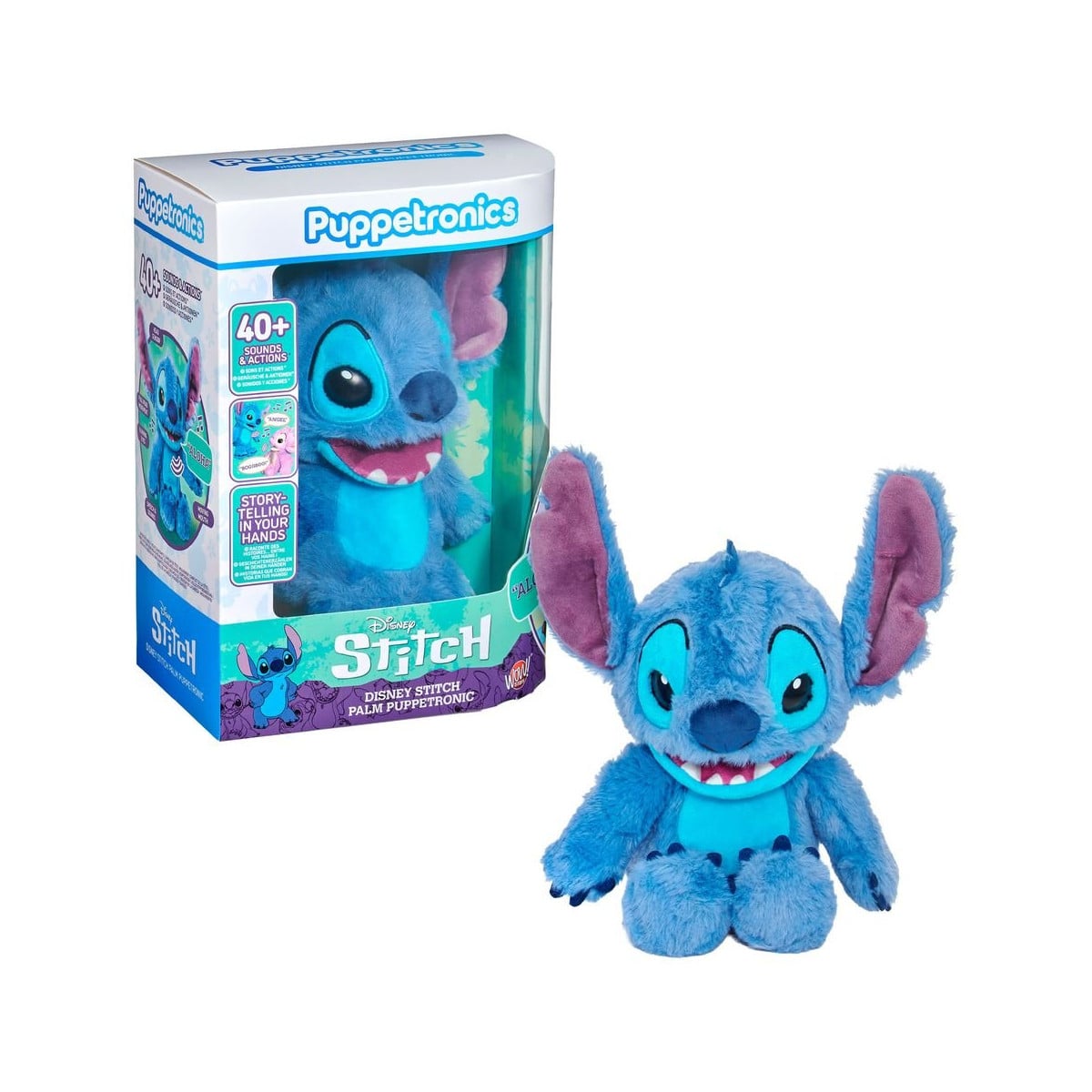 Stitch Puppetronic interactivo con más de 120 sonidos, luces y movimientos. Controla sus gestos y vive aventuras del universo Disney.