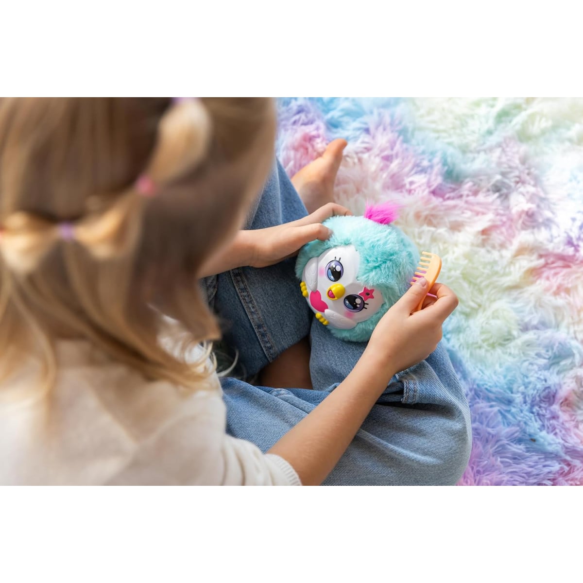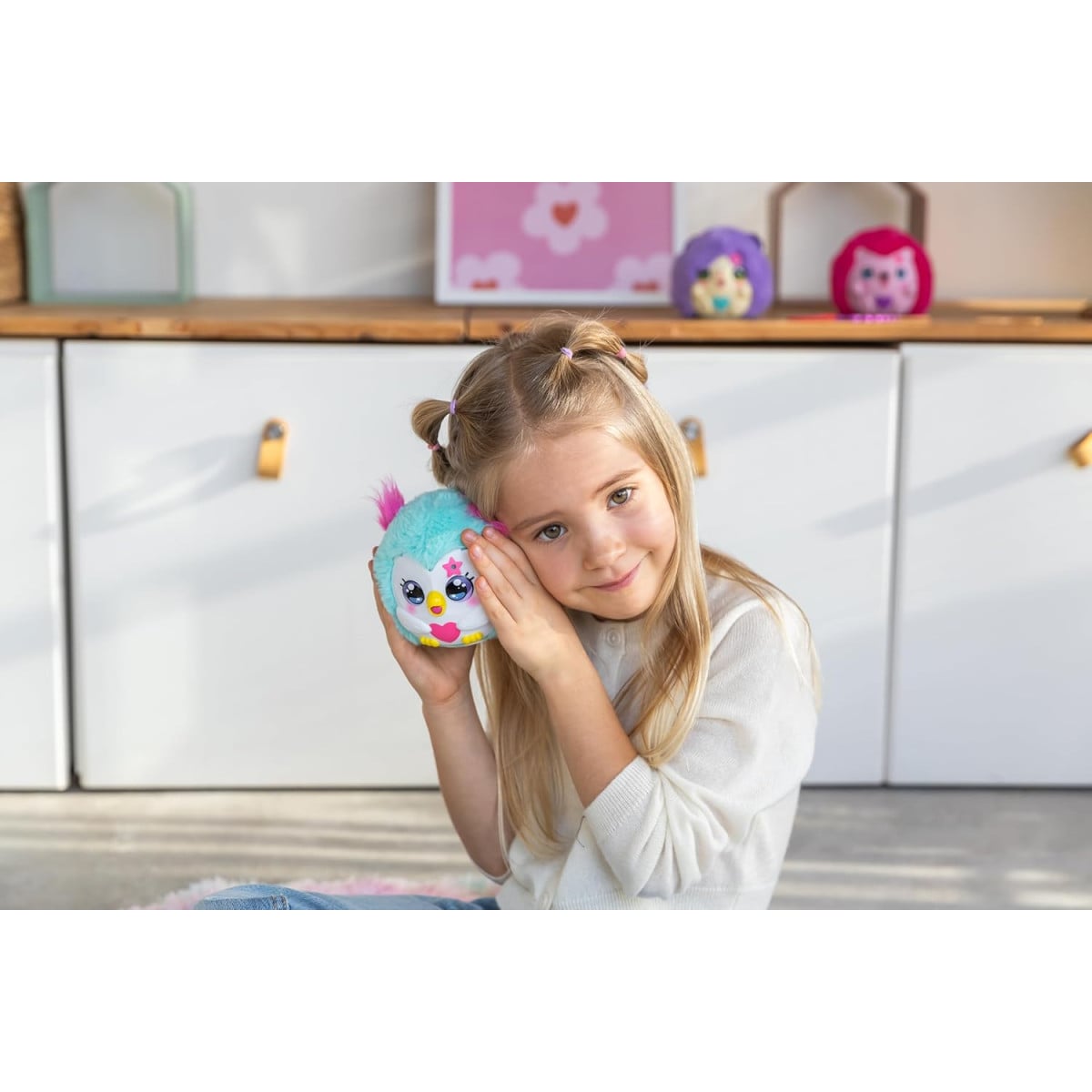 Peluche interactivo Kiss Meez búho con más de 30 sonidos, accesorios y reacciones. Ideal para cuidar y jugar desde los 3 años.