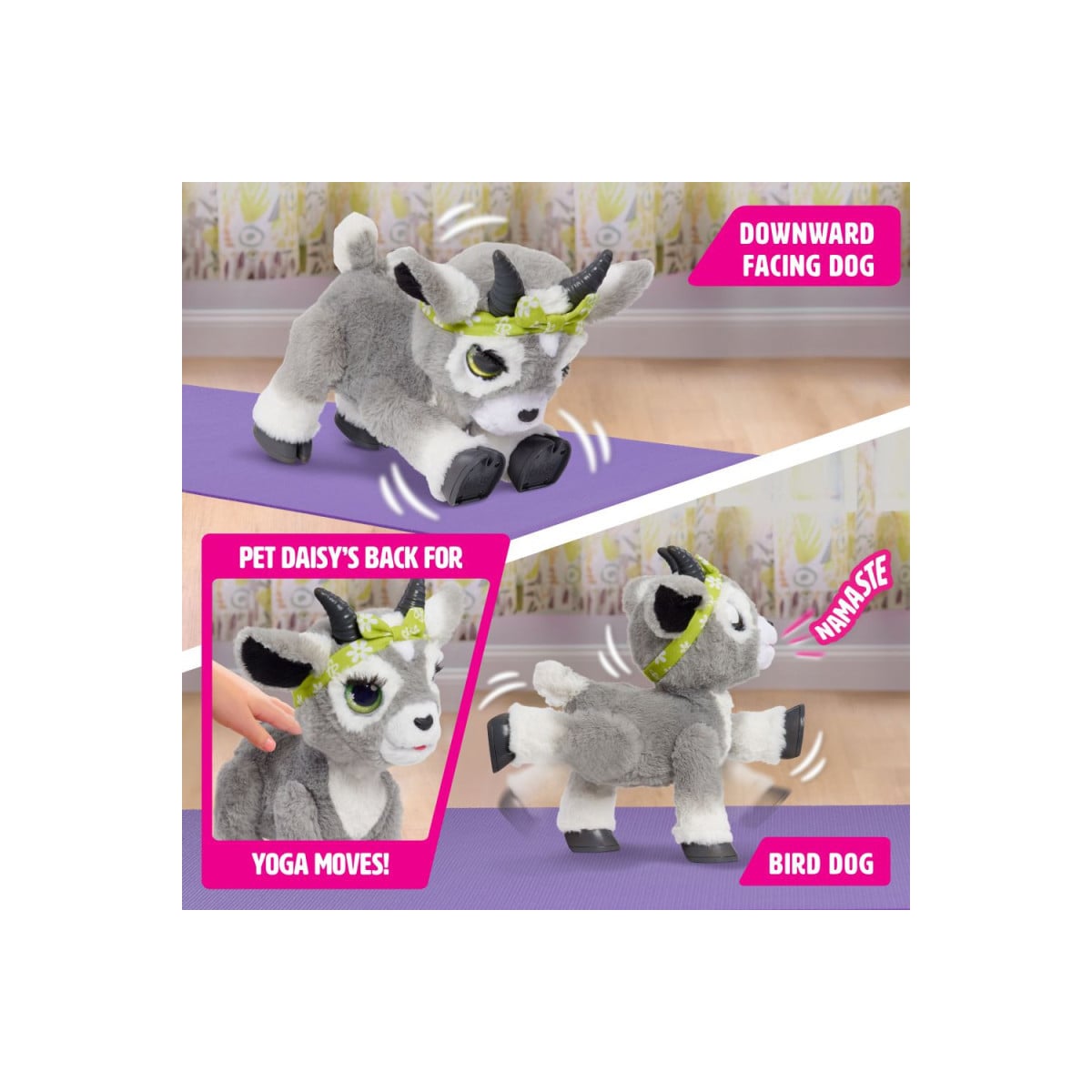 Con Furreal Daisy Yoga Goat, la cabra que hace yoga, los niños y niñas disfrutarán de un juguete interactivo con movimientos, sonidos y ternura.
