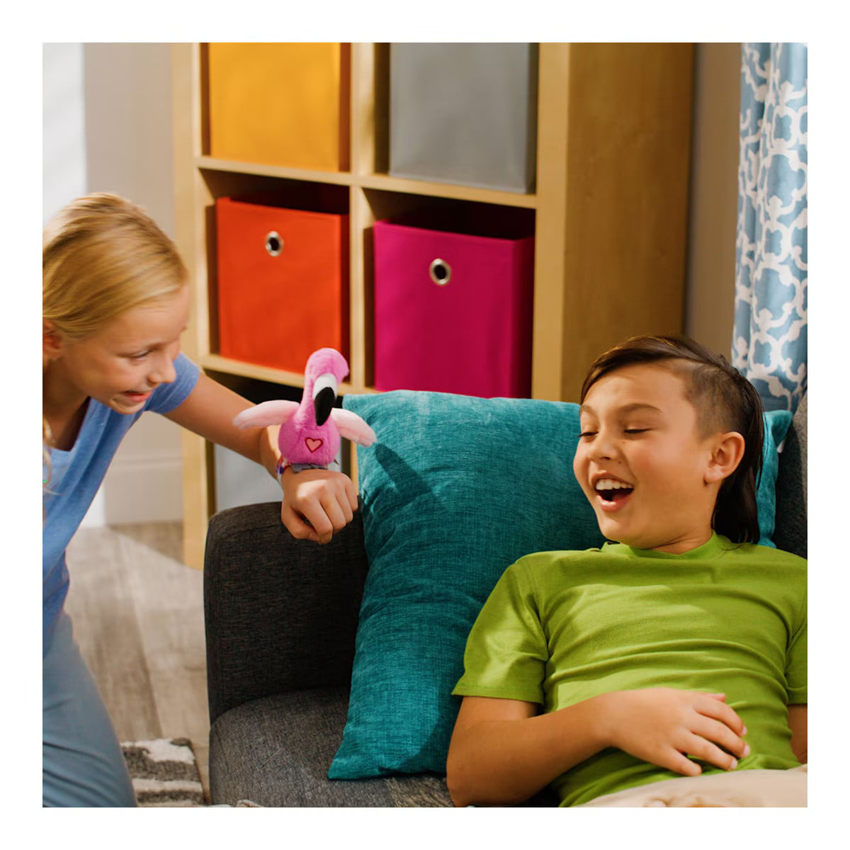 El Happy Jappers Pájaro Interactivo es un simpático peluche que llenará cualquier habitación de alegría. Este divertido pájaro no solo repite lo que dices, sino que lo hace con una voz graciosa y movimientos animados que hacen reír a toda la familia. Ideal para fomentar la comunicación, la imitación y el juego interactivo, este juguete se convierte en un compañero perfecto para los más pequeños.
