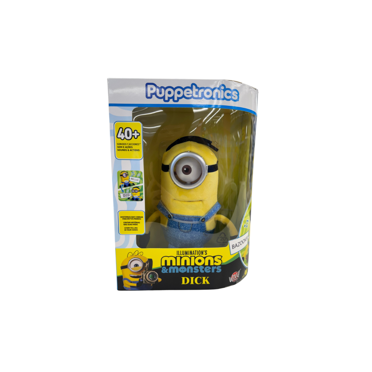 Haz que la diversión del universo Minions entre en casa con Dick Puppetronic, un muñeco interactivo lleno de movimiento, sonidos y expresiones. Gracias a su diseño y tecnología, podrás darle vida mientras juegas, creando momentos únicos y muy entretenidos.