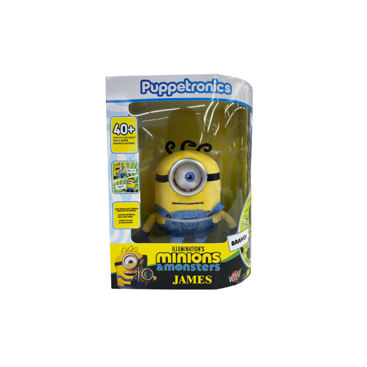 Minions James Puppetronic con más de 40 sonidos y reacciones. Interactivo, con sensor táctil y movimientos realistas. ¡Juego y diversión!