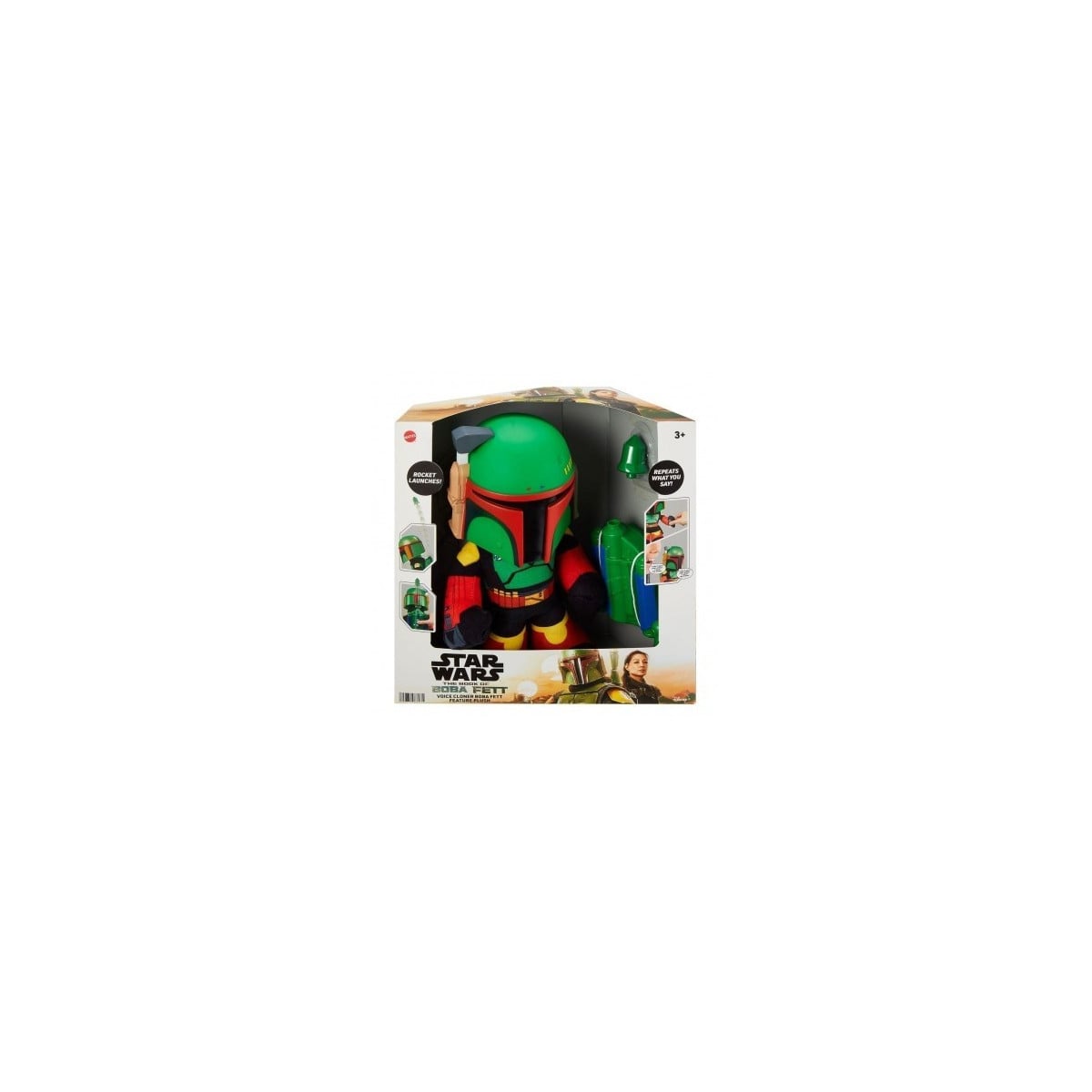 Procedente de una galaxia muy, muy lejana, te presentamos al peluche de Boba Fett, que se convertirá en tu compañero de aventuras y repetirá todo lo que dices