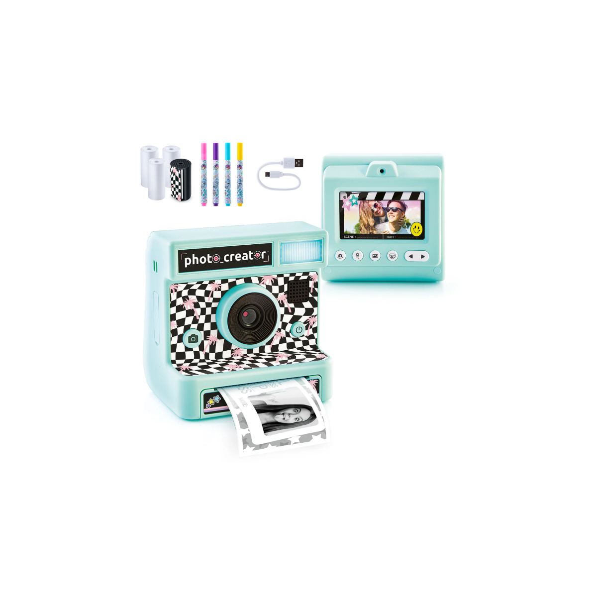 Descubre la cámara Photo Creator Retro: imprime más de 250 fotos, añade efectos, decóralas con pegatinas y crea recuerdos personalizados. ¡Con estilo retro!