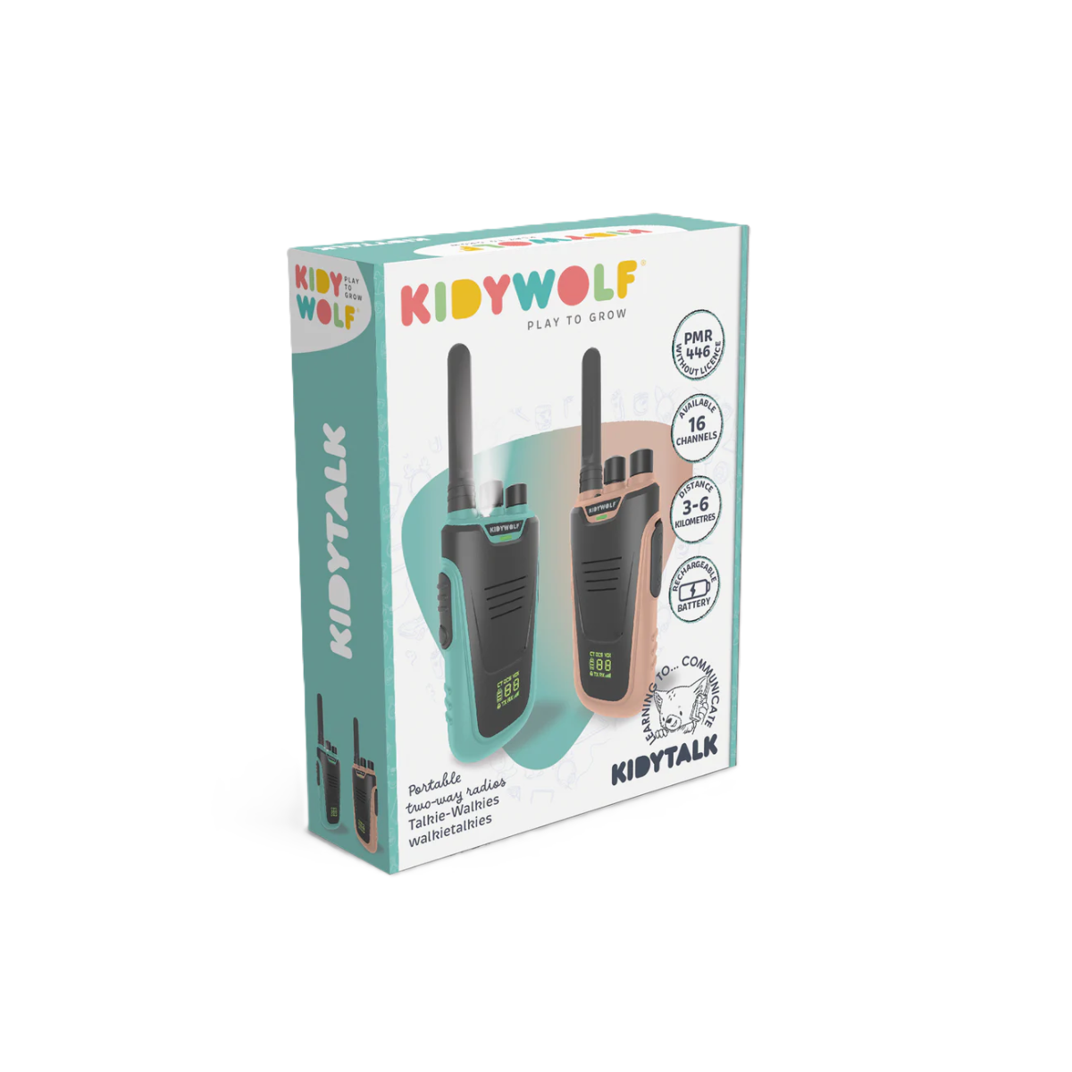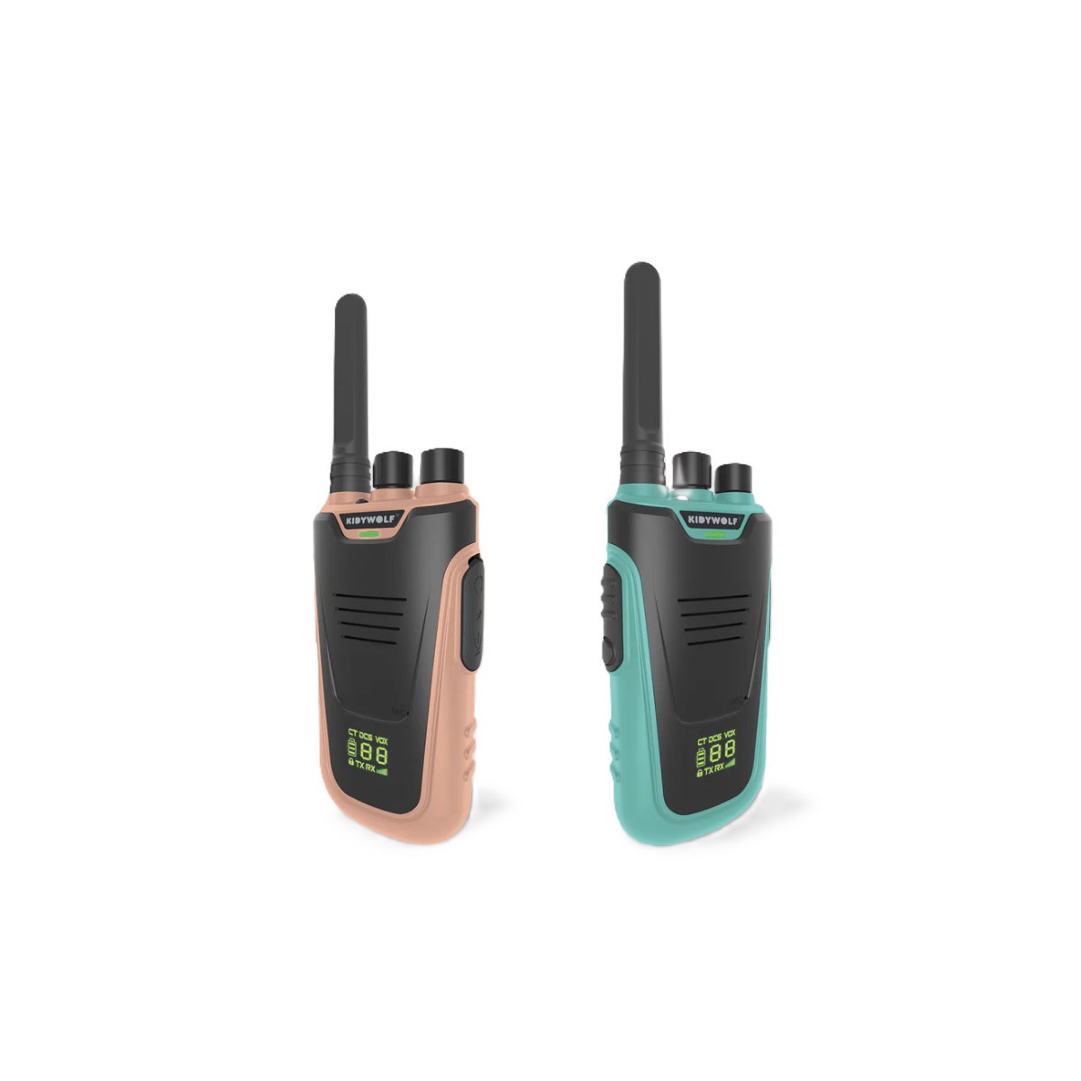 Descubre los KIDYWOLF Walkie-Talkies Kidytalk Natural-Cián; diseñados para que cada misión sea única y llena de diversión.