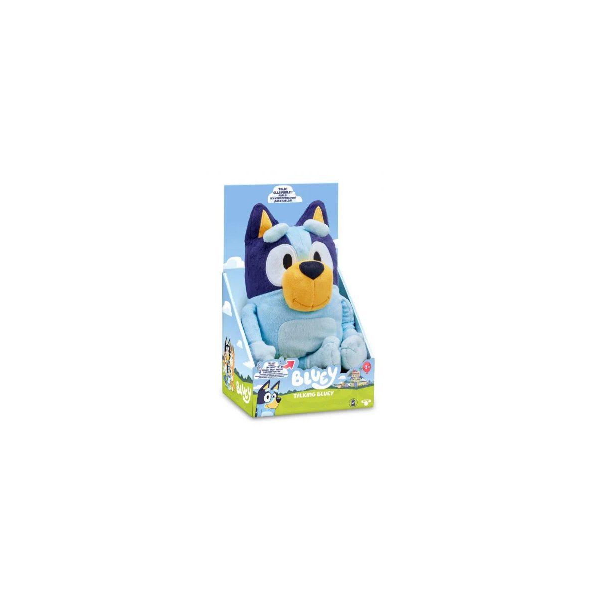El Bluey Parlante de 25 cm es perfecto para los más pequeños, ya que es suave, abrazable y ofrece una experiencia interactiva. El peluche representa a Bluey, la perrita azul protagonista de la serie. Su aspecto es fiel al personaje, con sus grandes ojos y orejas puntiagudas. Con una altura de 25 cm, este peluche es fácil de llevar a todas partes y se adapta perfectamente a las manos de los niños. Al presionar la barriga de Bluey, se activan 9 divertidas frases diferentes. Los niños pueden escuchar las voces y expresiones características de Bluey mientras juegan. Además de las frases, el peluche también permite cantar junto a Bluey la canción de la serie.