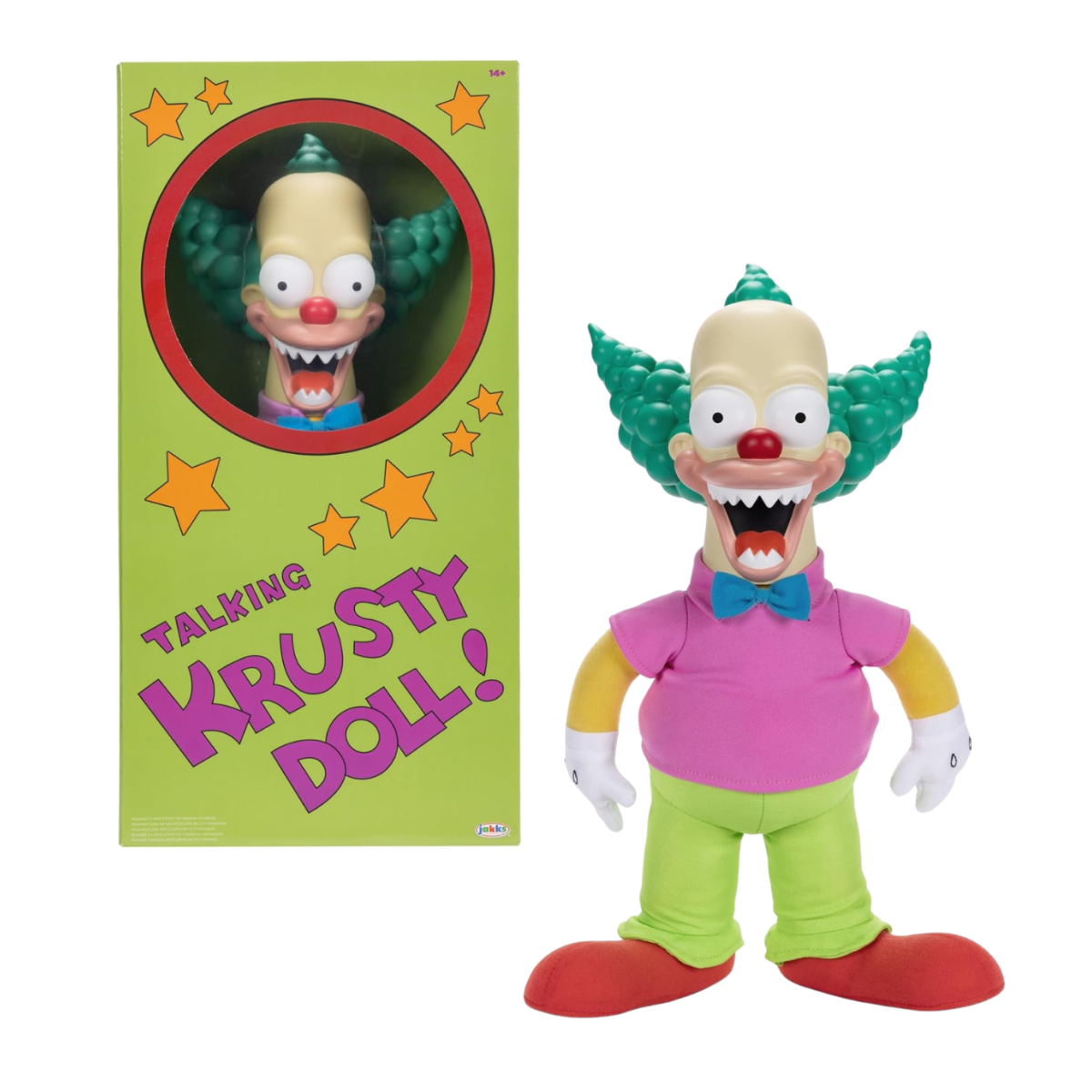 El Peluche Interactivo Krusty El Payaso está directamente inspirado en uno de los episodios más recordados de Halloween de la serie, el mítico “Treehouse of Horror”, donde el muñeco de Krusty incluía un interruptor de “bueno” o “malo” que cambiaba completamente su comportamiento. Este detalle icónico se traslada a este juguete, convirtiéndolo en una pieza muy especial tanto para jugar como para coleccionar.