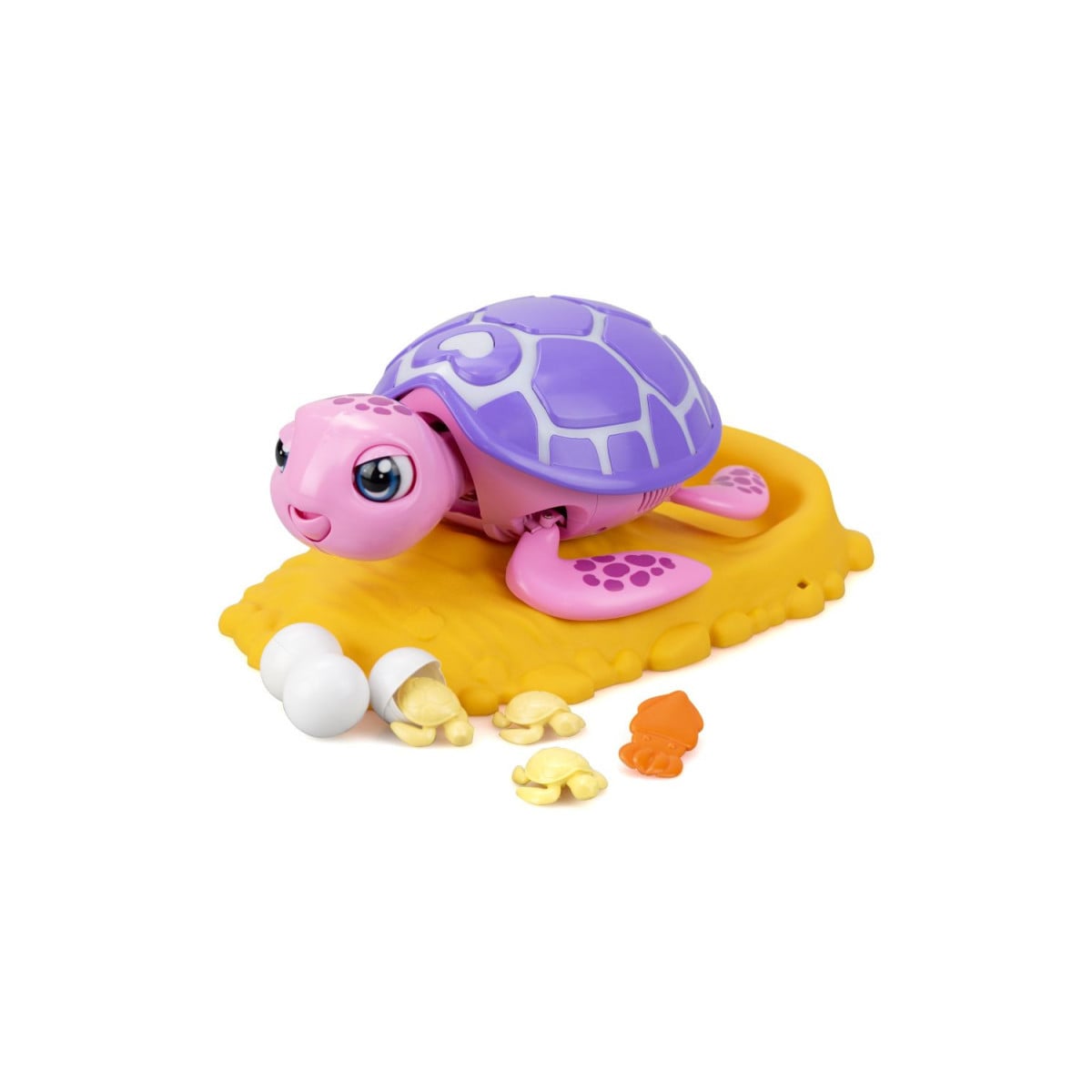 Los peques tendrán que colocarle el trocito roto de su caparazón para ayudarla a recuperarse. Cada tortuga cuenta con luz, sonido y movimiento y ponen hasta 3 huevos, en cuyo interior encontrarás unas adorables tortuguitas.