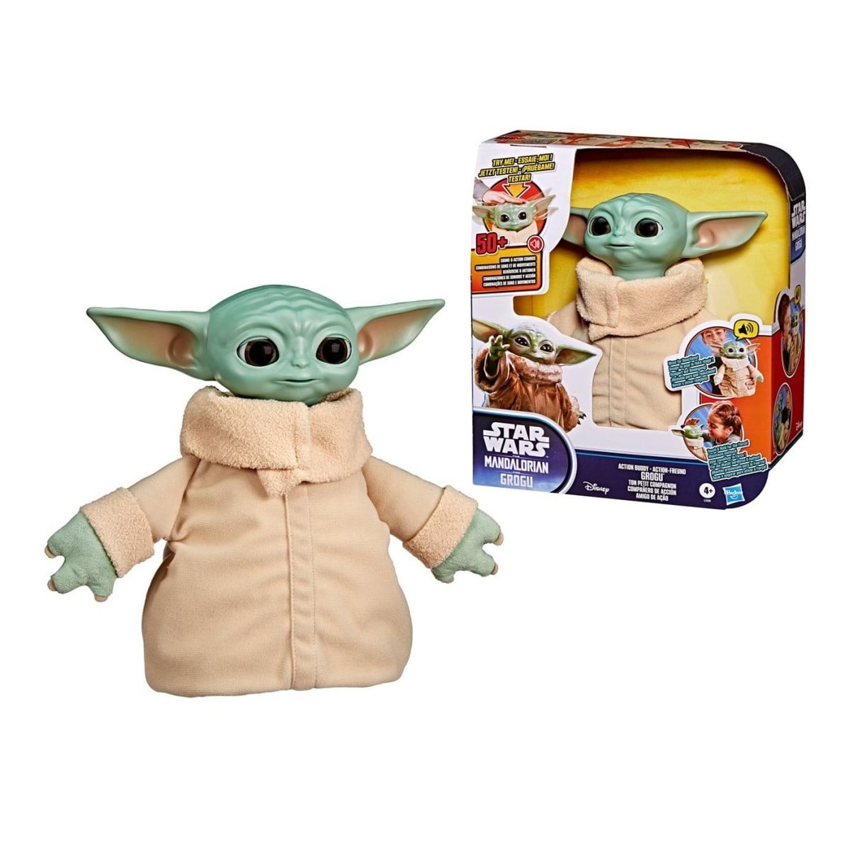 Hasbro, junto a la licencia oficial de Star Wars, presenta este juguete interactivo con cuerpo suave y detalles inspirados en la serie The Mandalorian. Grogu incorpora más de 50 combinaciones de sonidos y movimientos, reaccionando de distintas formas según cómo se utilice: puede mover la cabeza, emitir sonidos o activar efectos especiales al tocarlo.