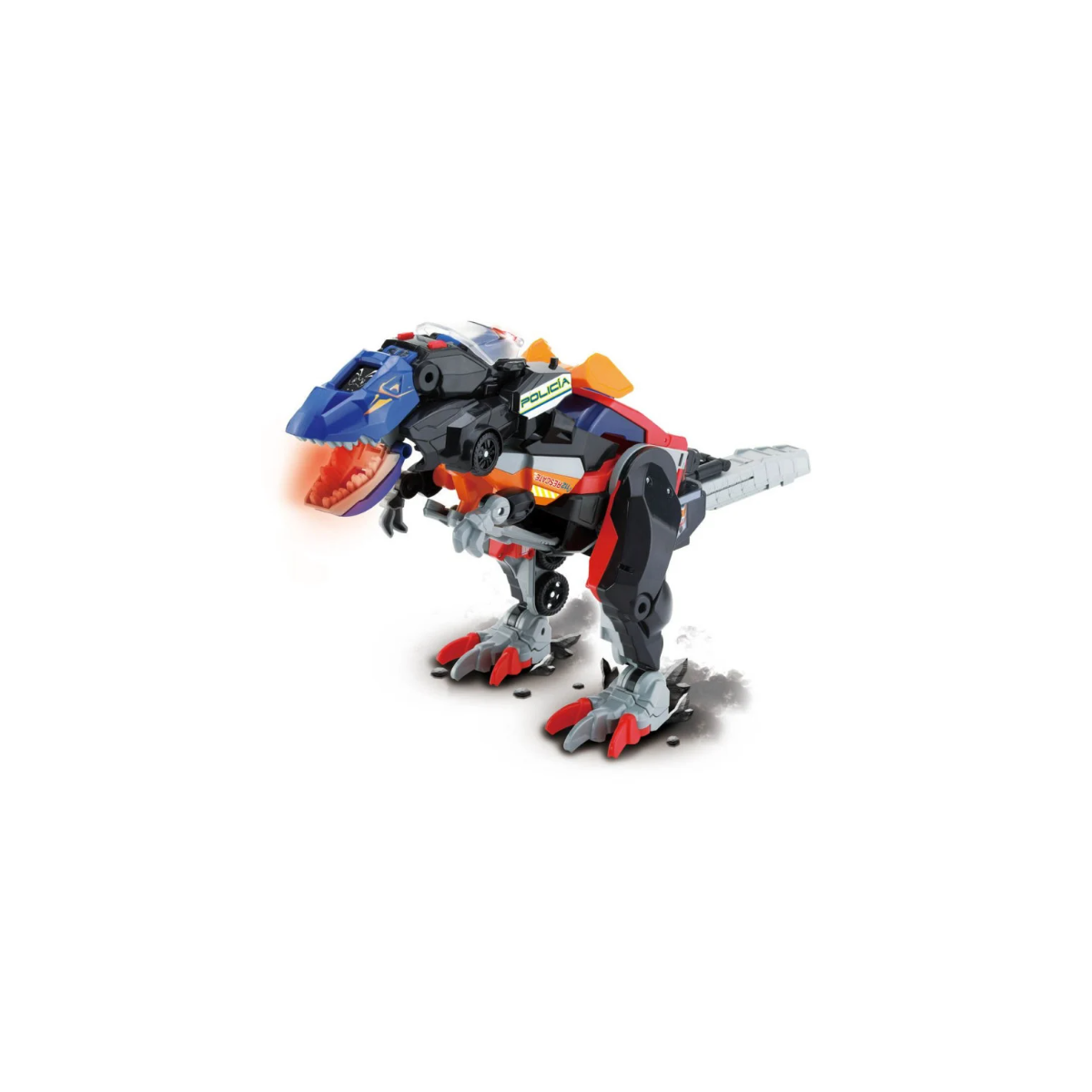Switch & Go nos lleva a un mundo lleno de aventuras con el T-rex 4 en 1. Con luces y sonidos, el Mega T-Rex se puede transformar en un helicóptero de salvamento, un coche de policía o un camión de bomberos.