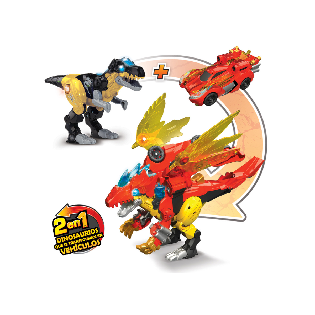 Figura transformable: coche de carreras ↔ dragón T-Rex.
