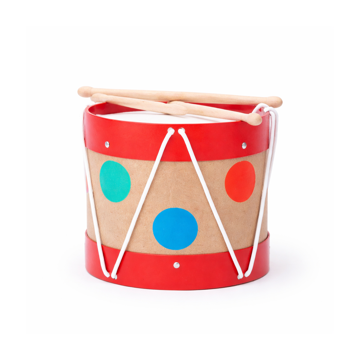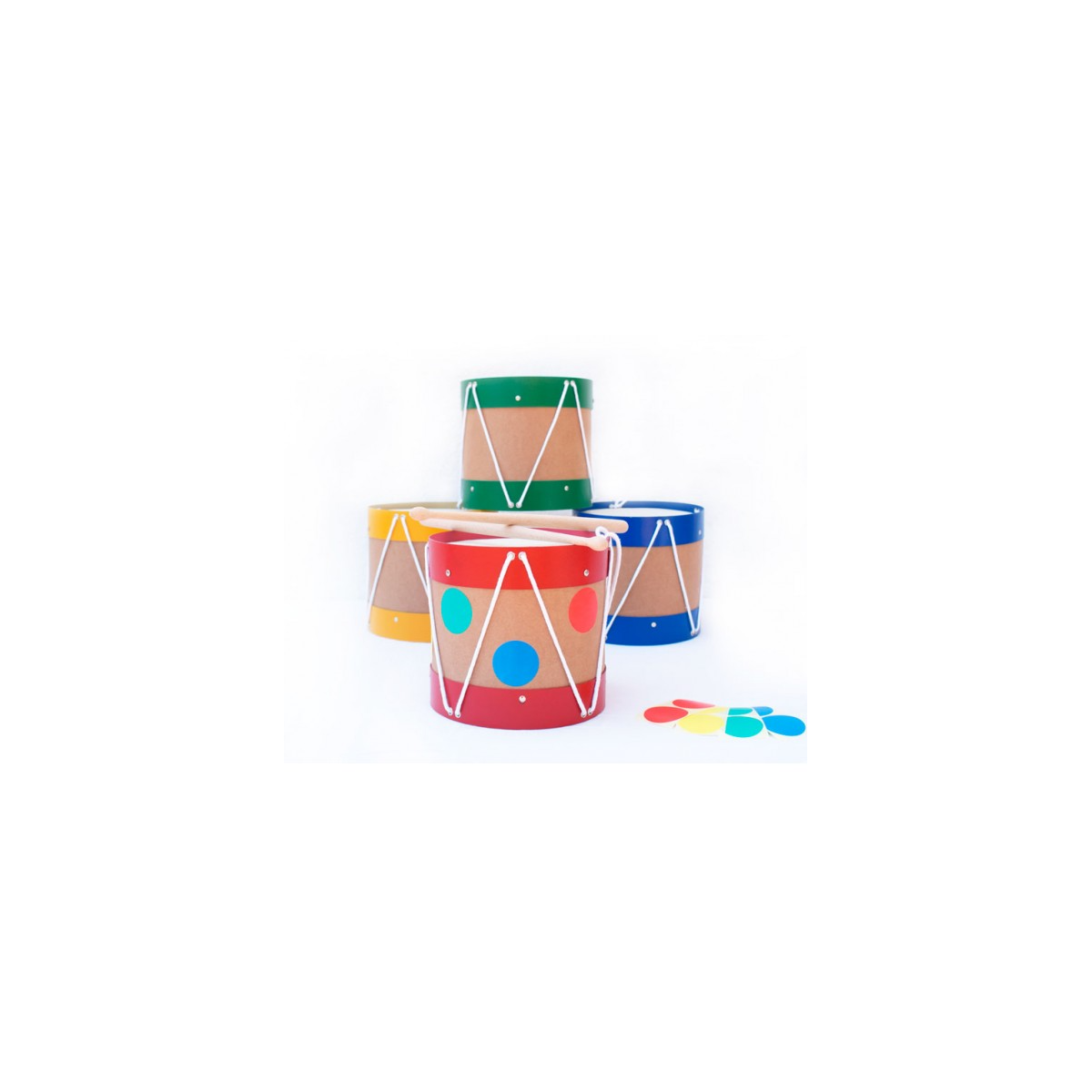 Fabricado con cartón resistente, este tambor es ligero, seguro y fácil de usar. Su tamaño de 20 cm lo hace ideal para manos pequeñas, permitiendo que los niños y niñas lo sostengan cómodamente mientras juegan a ser grandes percusionistas. Además, al ser personalizable, pueden decorarlo a su gusto con pinturas, pegatinas o cualquier otro material, convirtiéndolo en un instrumento único y especial.
