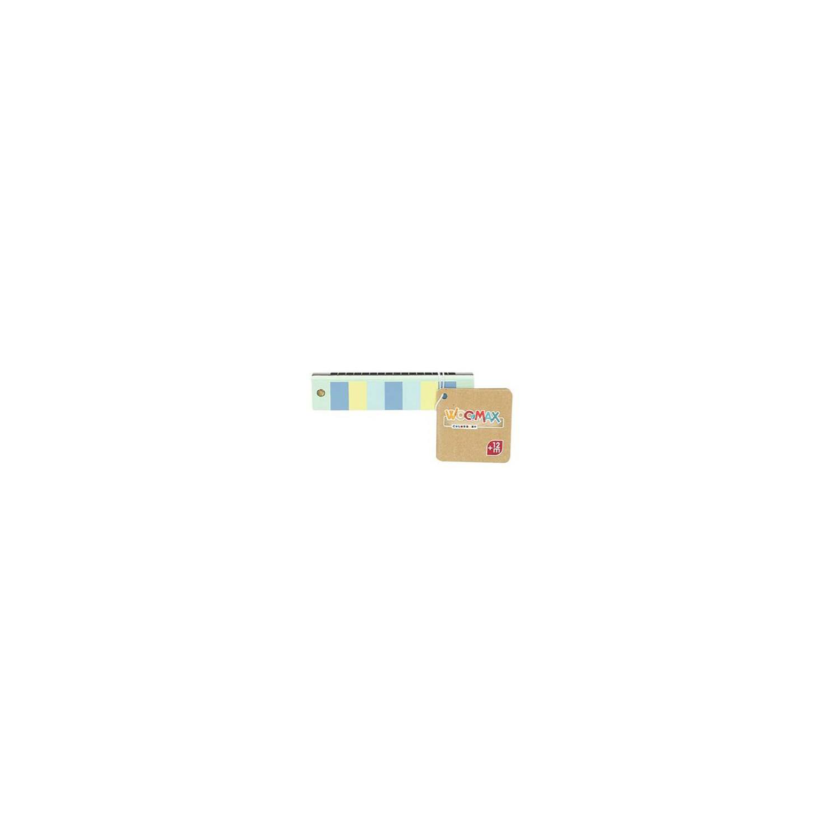 Armónica de madera WOOMAX con colores suaves y diseño infantil. Perfecta para iniciarse en la música, desarrollar el ritmo y la creatividad de forma divertida desde los 12 meses.