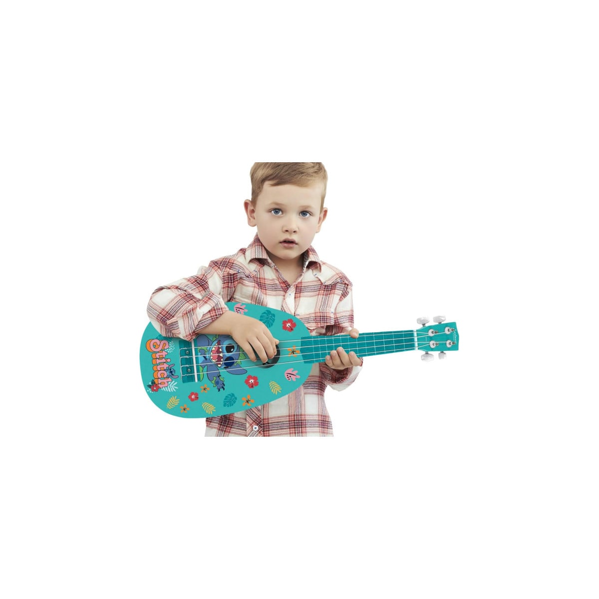 Descubre el Ukelele de madera Stitch, ideal para niños. Diseño divertido, cuerdas de nylon y guía incluida. ¡Perfecto para aprender música!