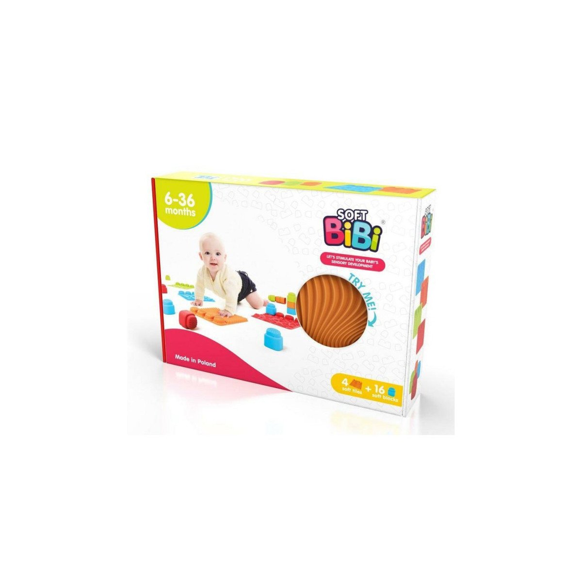 - Incluye 16 bloques sensoriales blandos con texturas y formas variadas.