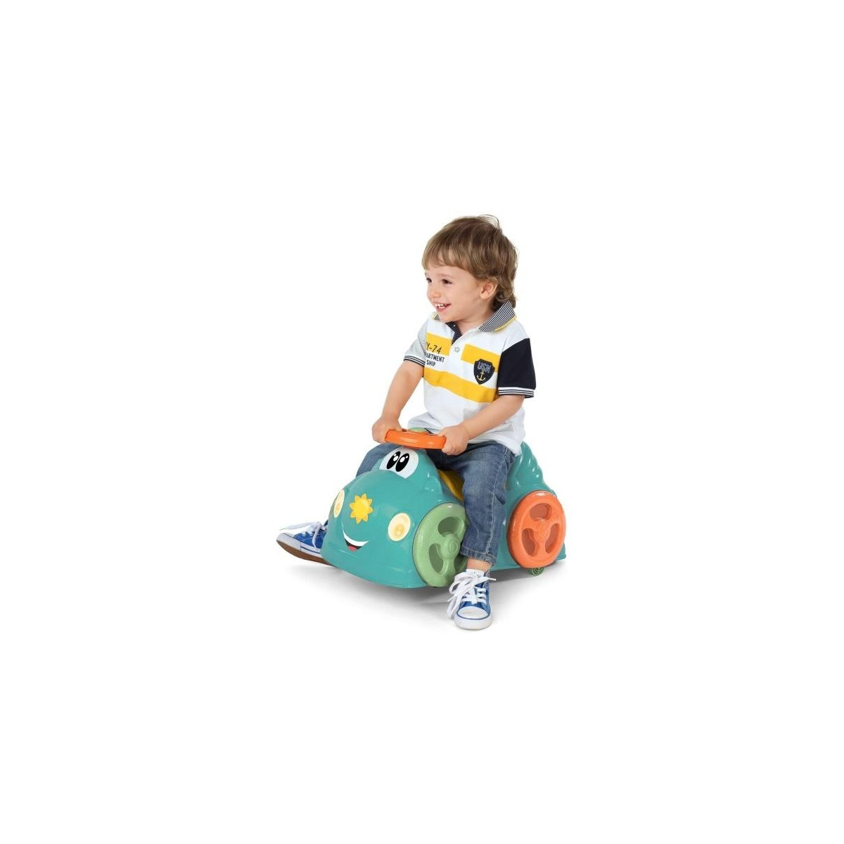 Tu peque se lo pasará en grande con este correpasillos infantil de la marca Chicco fabricado con un 75% de plástico reciclado.